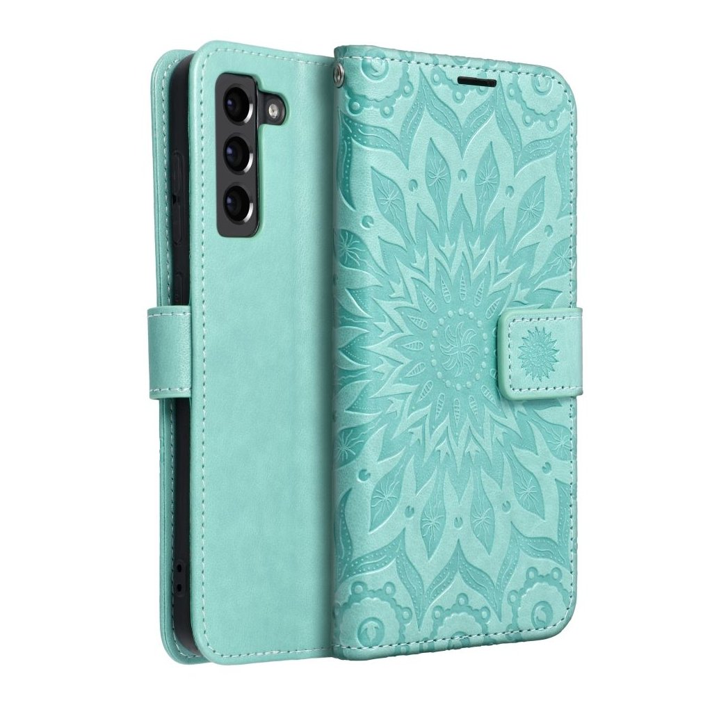Peňaženkové / zatváracie Puzdro MEZZO Book pre SAMSUNG S21 FE mandala - zelené zaujme predovšetkým spracovaním vzoru mandaly, stromu, prípadne lapača snov. Oproti iným puzdrom podobného typu nie sú totiž vzory u puzdier Forcell Mezzo Book natlačené, ale vtlačené priamo do materiálu (ekologická koža). Vďaka tomu sa vzor jednak nezotrie, ale môžete ho naozaj na dotyk cítiť.