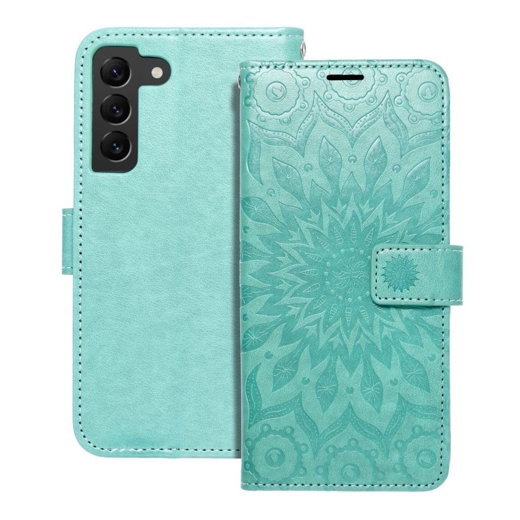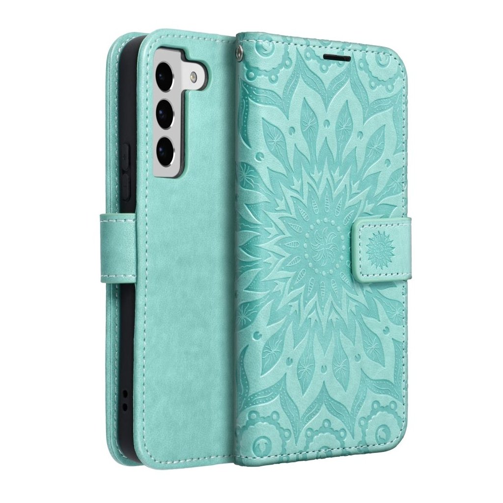 Peňaženkové / zatváracie Puzdro MEZZO Book pre SAMSUNG S22 mandala - zelené zaujme predovšetkým spracovaním vzoru mandaly, stromu, prípadne lapača snov. Oproti iným puzdrom podobného typu nie sú totiž vzory u puzdier Forcell Mezzo Book natlačené, ale vtlačené priamo do materiálu (ekologická koža). Vďaka tomu sa vzor jednak nezotrie, ale môžete ho naozaj na dotyk cítiť.