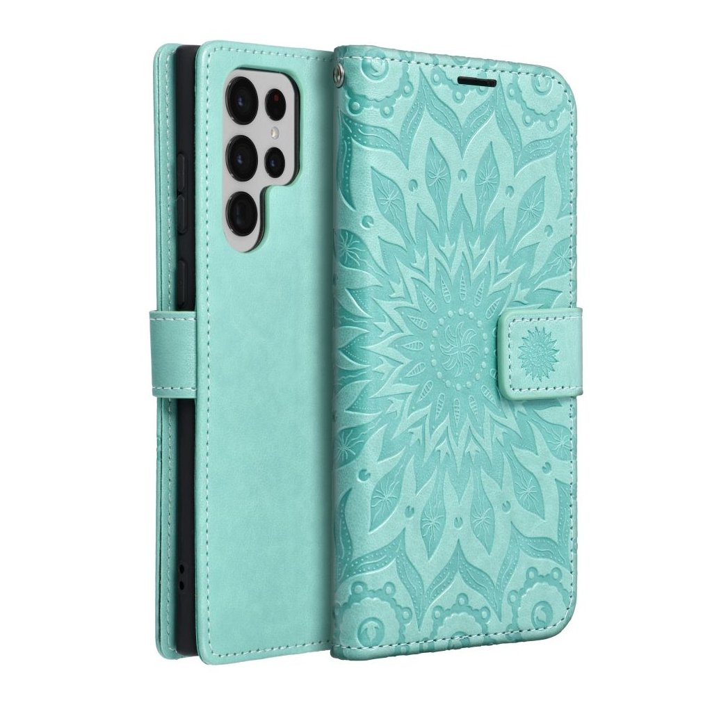 Peňaženkové / zatváracie Puzdro MEZZO Book pre SAMSUNG S22 Ultra mandala - zelené zaujme predovšetkým spracovaním vzoru mandaly, stromu, prípadne lapača snov. Oproti iným puzdrom podobného typu nie sú totiž vzory u puzdier Forcell Mezzo Book natlačené, ale vtlačené priamo do materiálu (ekologická koža). Vďaka tomu sa vzor jednak nezotrie, ale môžete ho naozaj na dotyk cítiť.
