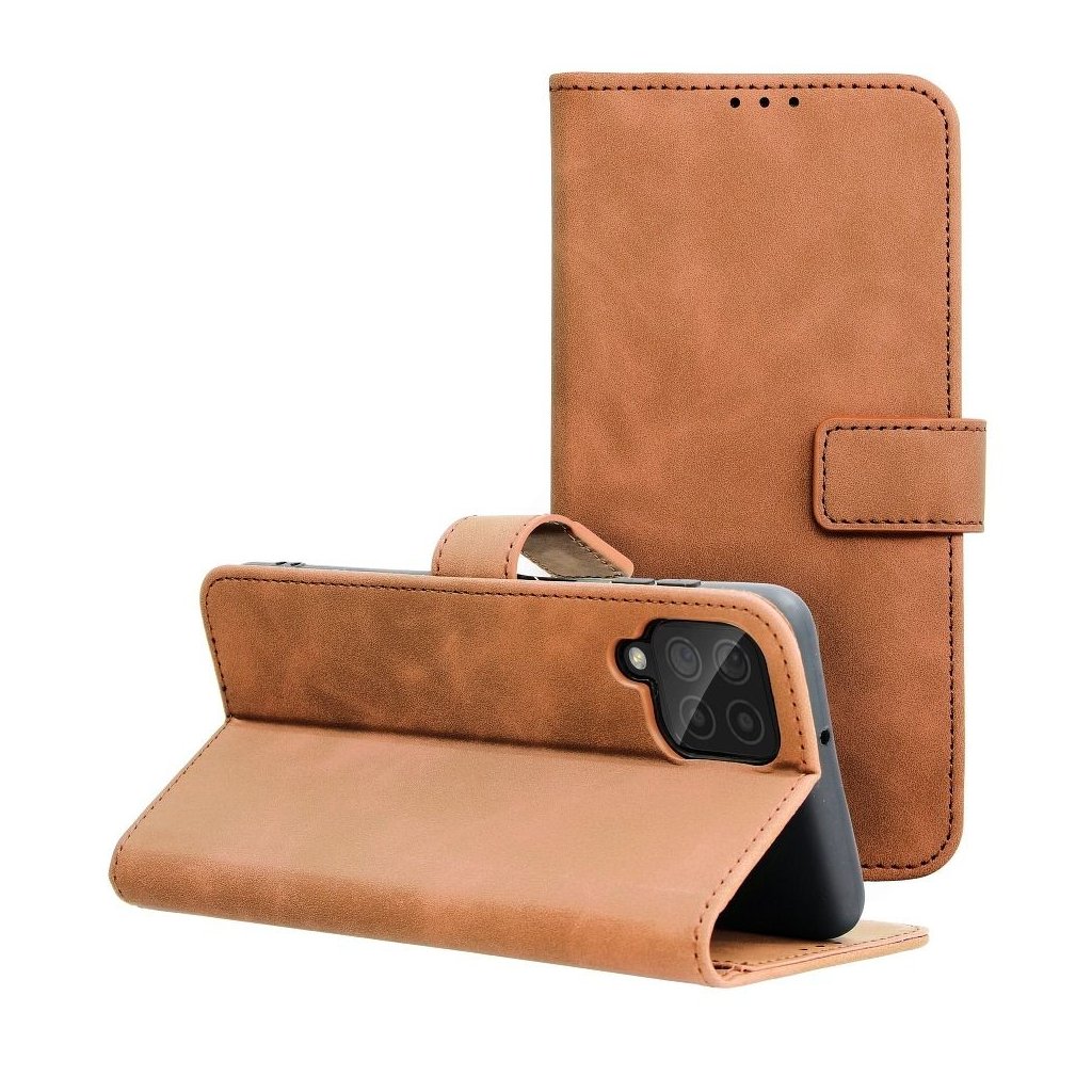 Zatvárací peňaženkový obal TENDER Book pre SAMSUNG A22 LTE ( 4G ) hnedý v príjemnej imitácii kože v decentných farbách je ako stvorené pre každého, kto má skutočne štýl. Materiál je na dotyk veľmi príjemný a mäkký, telefónu ale poskytuje plnú ochranu zo všetkých strán.