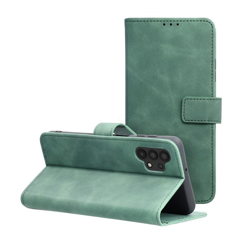 Zatvárací peňaženkový obal TENDER Book pre SAMSUNG A32 LTE ( 4G ) zelený v príjemnej imitácii kože v decentných farbách je ako stvorené pre každého, kto má skutočne štýl. Materiál je na dotyk veľmi príjemný a mäkký, telefónu ale poskytuje plnú ochranu zo všetkých strán.