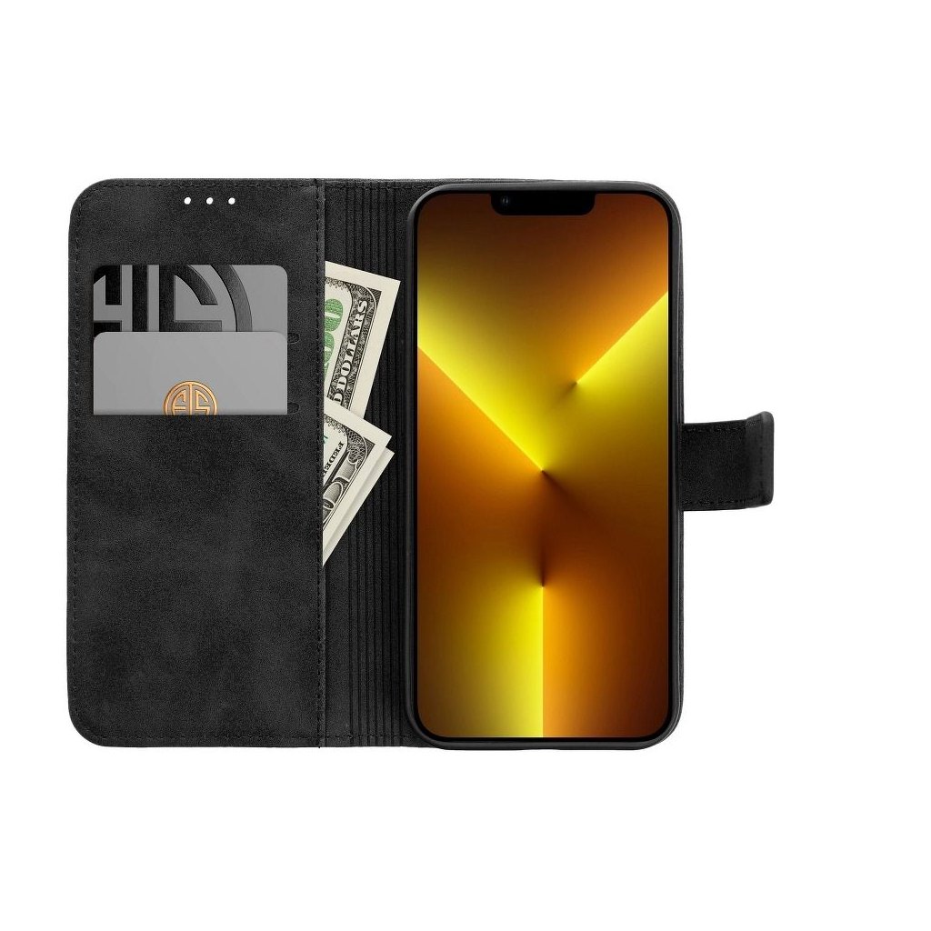 Zatvárací peňaženkový obal TENDER Book pre SAMSUNG S22 Ultra čierny v príjemnej imitácii kože v decentných farbách je ako stvorené pre každého, kto má skutočne štýl. Materiál je na dotyk veľmi príjemný a mäkký, telefónu ale poskytuje plnú ochranu zo všetkých strán.