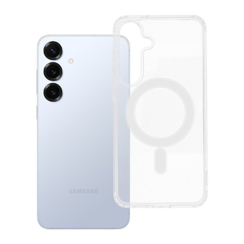Priehľadný obal pre Samsung S25 PLUS Clear Mag Cover compatible with MagSafe , ktorého odolná a priehľadná vrstva chráni Váš telefón pred nárazmi alebo poškriabaním. Produkt je kompatibilný s technológiou MagSafe, ktorá umožňuje indukčné nabíjanie.