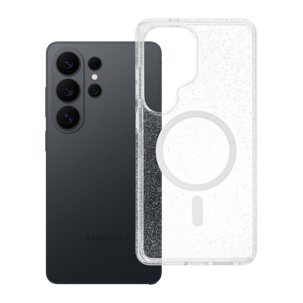 Priehľadný obal pre Samsung S26 ULTRA Clear Mag Cover (STR) compatible with MagSafe , ktorého odolná a priehľadná vrstva chráni Váš telefón pred nárazmi alebo poškriabaním. Produkt je kompatibilný s technológiou MagSafe, ktorá umožňuje indukčné nabíjanie.