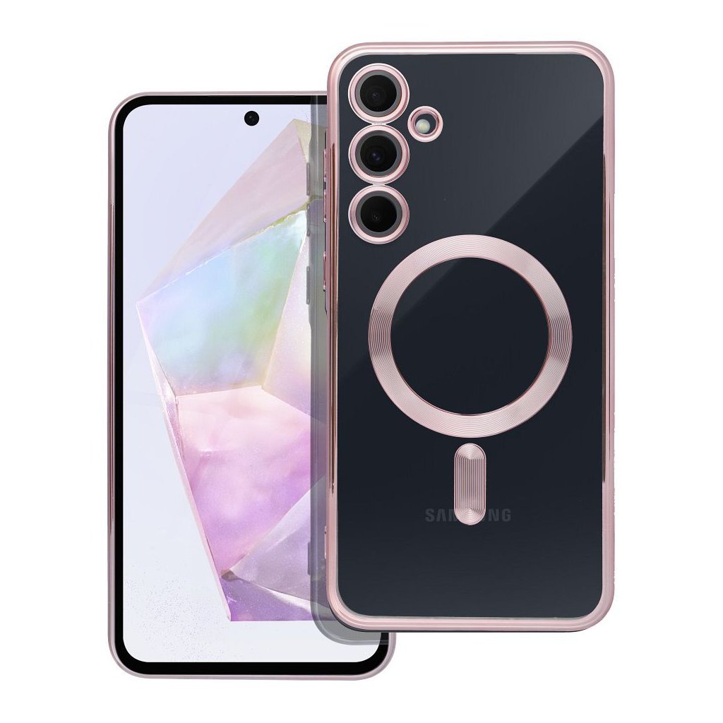 MagSafe priehľadné puzdro ELECTRO MAG COVER pre SAMSUNG A35 ružovo zlaté je vhodné pre pužitie s rôznym príslušenstvom podporujúce magnetické uchytenie MagSafe®. Kvalitný kryt ochráni váš telefón pred poškodením a vďaka prekrytiu ostrovčeka fotoaparátu bude vaša optika v bezpečí.