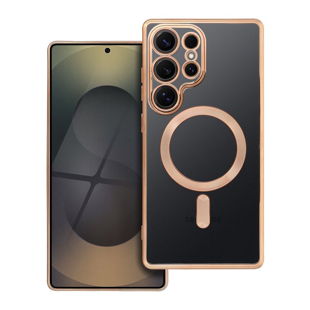 MagSafe priehľadné puzdro ELECTRO MAG COVER pre SAMSUNG S25 Ultra zlaté je vhodné pre pužitie s rôznym príslušenstvom podporujúce magnetické uchytenie MagSafe®. Kvalitný kryt ochráni váš telefón pred poškodením a vďaka prekrytiu ostrovčeka fotoaparátu bude vaša optika v bezpečí.