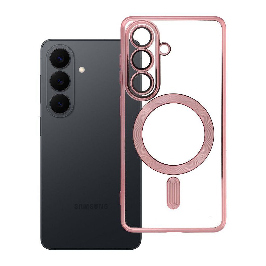 MagSafe priehľadné puzdro Case for Samsung S26 Electro Mag Cover compatible with MagSafe zlaté-rose je vhodné pre pužitie s rôznym príslušenstvom podporujúce magnetické uchytenie MagSafe®. Kvalitný kryt ochráni váš telefón pred poškodením a vďaka prekrytiu ostrovčeka fotoaparátu bude vaša optika v bezpečí.