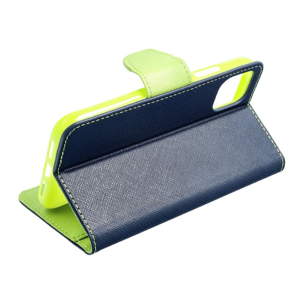 Obľúbené knižkové puzdro na mobil FANCY Book pre SAMSUNG S24 ULTRA modré / limetkové je vyrobené z vysoko kvalitnej mäkkej technickej kože, ktorá je na okrajoch prešívaná. Puzdro je teda nielen elegantné, ale aj pevnejšie a odolnenšie na každodenné používanie.