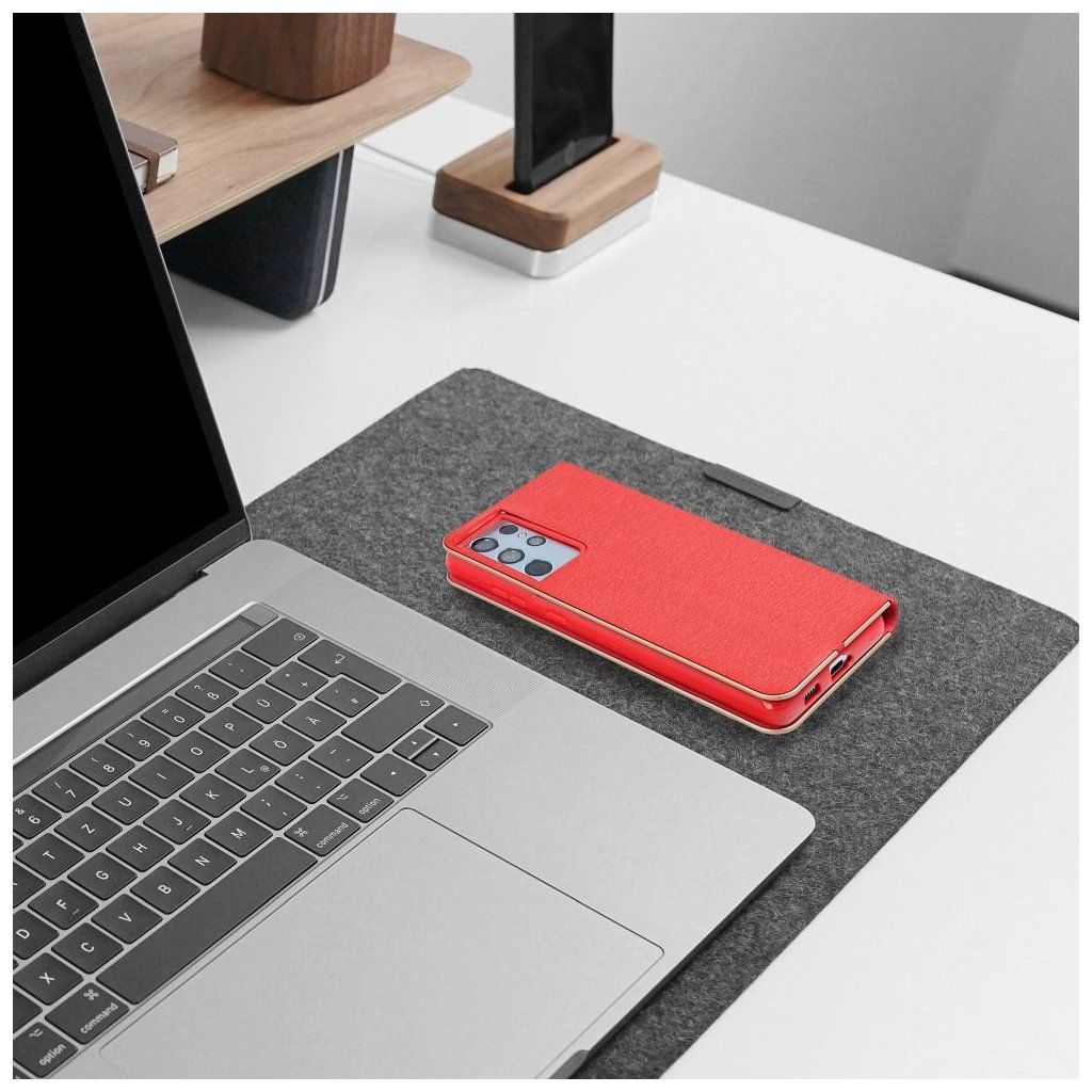 Vďaka svojej konštrukcii môžete puzdro LUNA Book pre SAMSUNG A56 5G červené použiť aj ako stojan na televízor. Jednoducho odklopte zadný kryt a sledujte filmy alebo surfujte po internete bez toho, aby ste museli telefón držať v ruke.