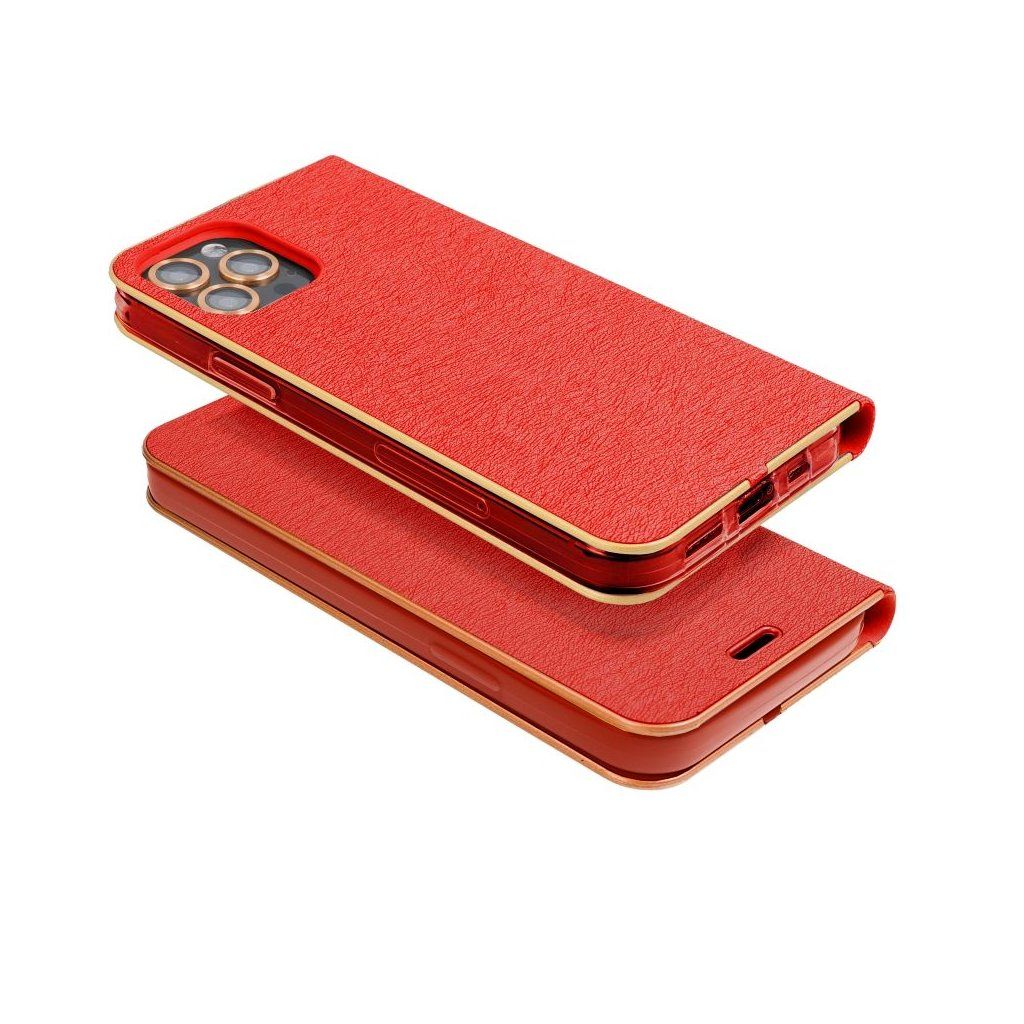 Peňaženkové puzdro LUNA Book pre SAMSUNG A56 5G červené je vyrobené z kvalitnej mäkkej technickej kože s atraktívnou textúrou, ktorá je po okrajoch vystužená hliníkovým rámom. Puzdro je preto nielen veľmi elegantné, ale aj pevnejšie a stabilnejšie. Mäkká semišová úprava vnútornej strany puzdra zaručuje skvelú ochranu displeja pred poškriabaním.