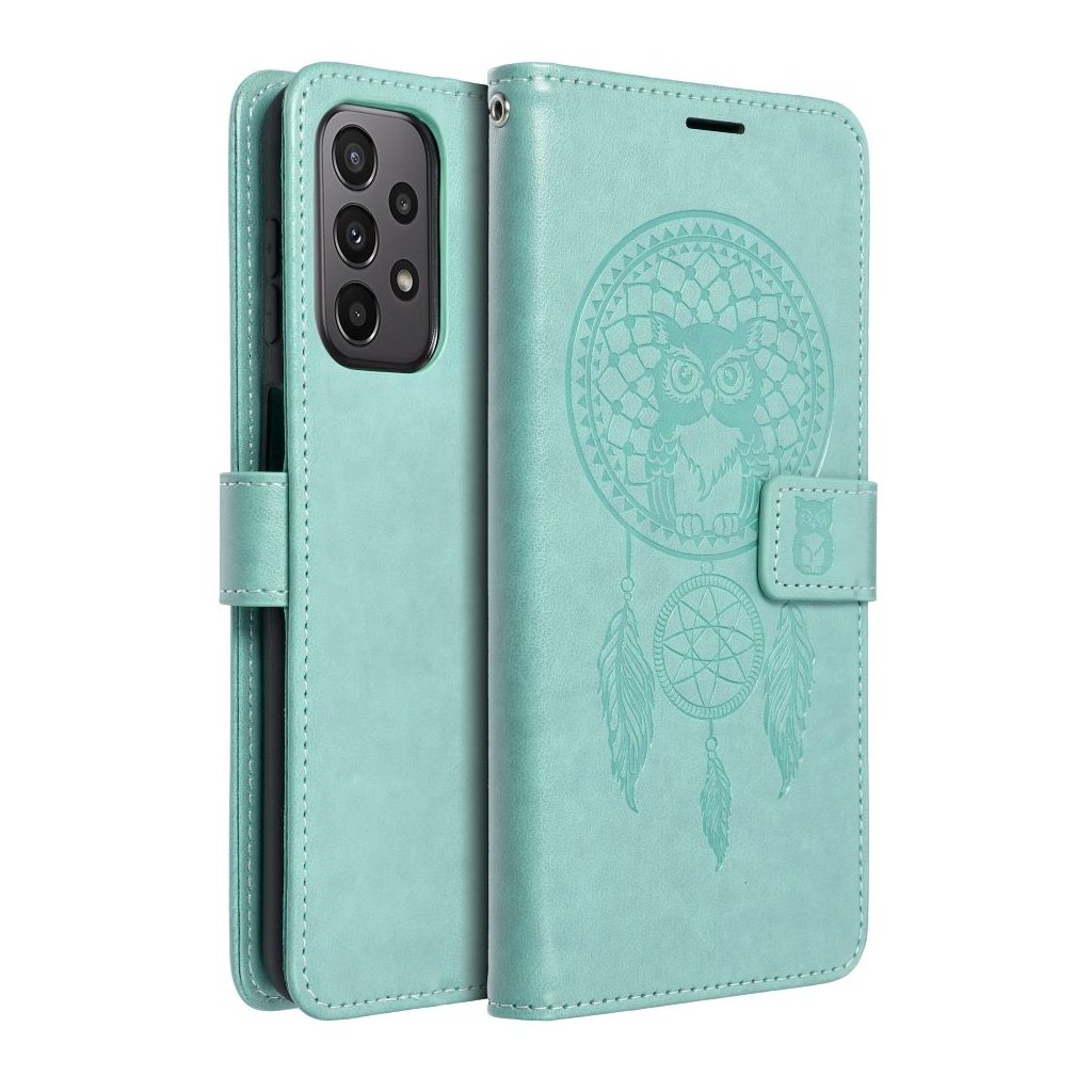 Peňaženkové / zatváracie Puzdro MEZZO Book pre SAMSUNG A23 5G lapač snov - zelené zaujme predovšetkým spracovaním vzoru mandaly, stromu, prípadne lapača snov. Oproti iným puzdrom podobného typu nie sú totiž vzory u puzdier Forcell Mezzo Book natlačené, ale vtlačené priamo do materiálu (ekologická koža). Vďaka tomu sa vzor jednak nezotrie, ale môžete ho naozaj na dotyk cítiť.