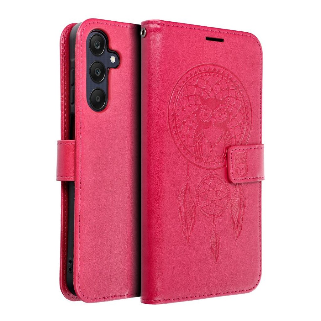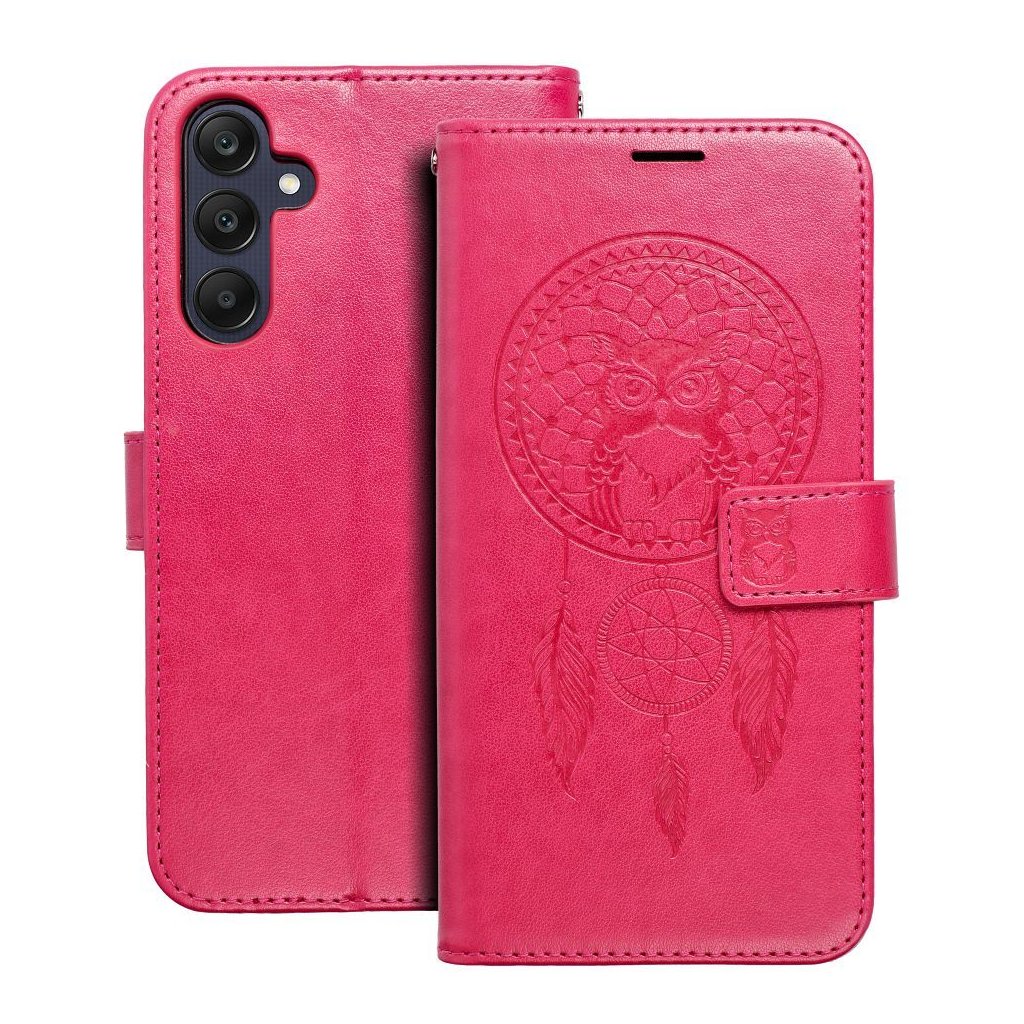 Peňaženkové / zatváracie Puzdro MEZZO Book pre SAMSUNG A25 5G lapač snov - magenta zaujme predovšetkým spracovaním vzoru mandaly, stromu, prípadne lapača snov. Oproti iným puzdrom podobného typu nie sú totiž vzory u puzdier Forcell Mezzo Book natlačené, ale vtlačené priamo do materiálu (ekologická koža). Vďaka tomu sa vzor jednak nezotrie, ale môžete ho naozaj na dotyk cítiť.