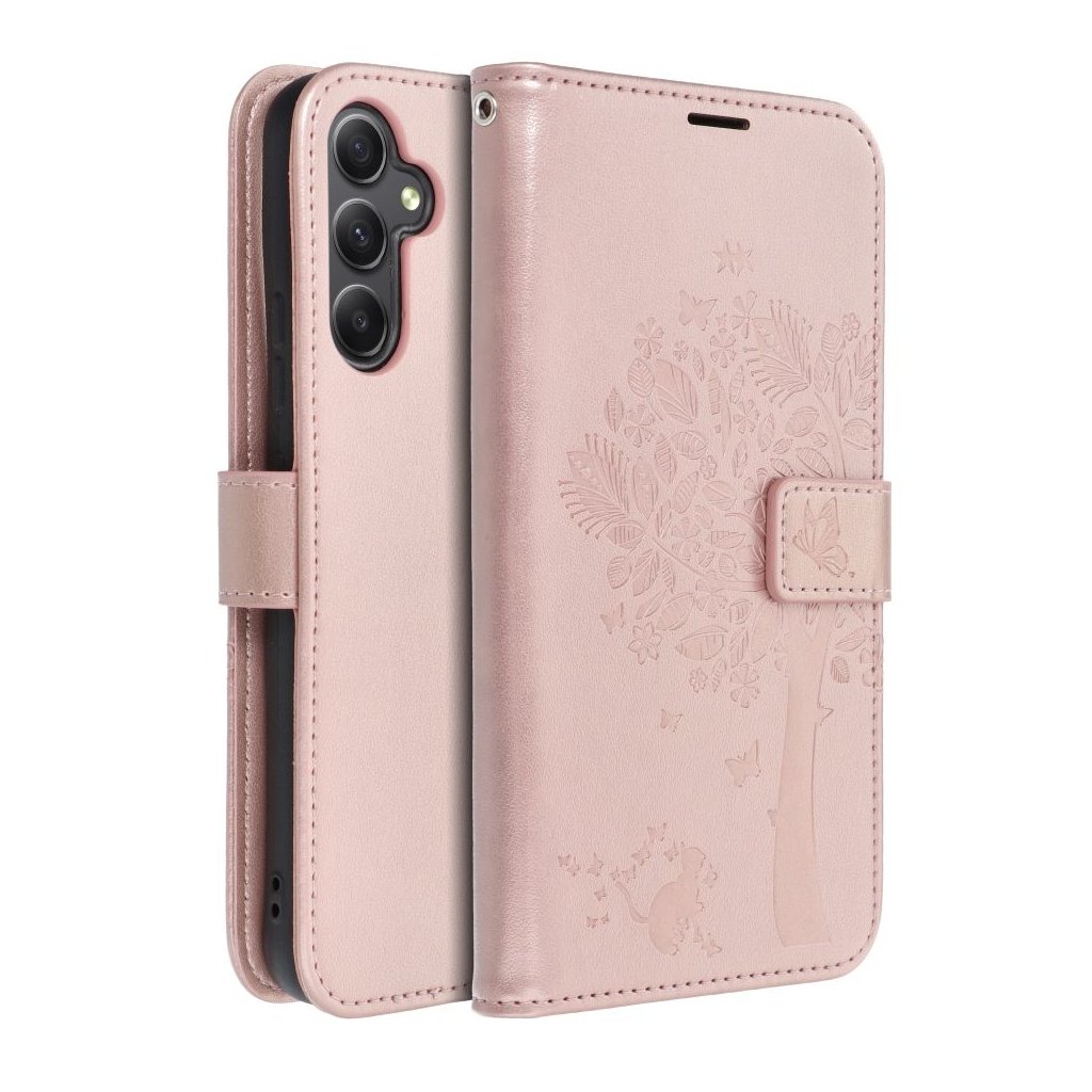 Peňaženkové / zatváracie Puzdro MEZZO Book pre SAMSUNG A34 5G strom - ružovo zlaté zaujme predovšetkým spracovaním vzoru mandaly, stromu, prípadne lapača snov. Oproti iným puzdrom podobného typu nie sú totiž vzory u puzdier Forcell Mezzo Book natlačené, ale vtlačené priamo do materiálu (ekologická koža). Vďaka tomu sa vzor jednak nezotrie, ale môžete ho naozaj na dotyk cítiť.