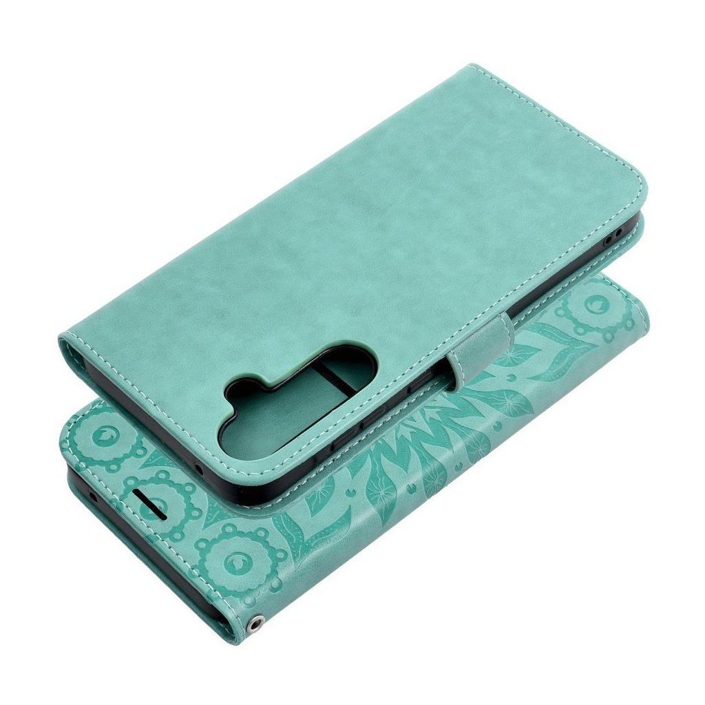 Peňaženkové / zatváracie Puzdro MEZZO Book pre SAMSUNG A35 5G mandala - zelené zaujme predovšetkým spracovaním vzoru mandaly, stromu, prípadne lapača snov. Oproti iným puzdrom podobného typu nie sú totiž vzory u puzdier Forcell Mezzo Book natlačené, ale vtlačené priamo do materiálu (ekologická koža). Vďaka tomu sa vzor jednak nezotrie, ale môžete ho naozaj na dotyk cítiť.