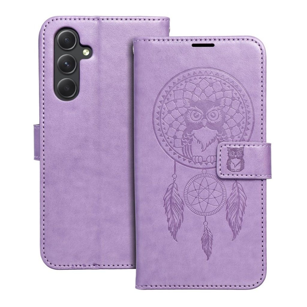 Peňaženkové / zatváracie Puzdro MEZZO Book pre SAMSUNG A54 5G lapač snov - fialové zaujme predovšetkým spracovaním vzoru mandaly, stromu, prípadne lapača snov. Oproti iným puzdrom podobného typu nie sú totiž vzory u puzdier Forcell Mezzo Book natlačené, ale vtlačené priamo do materiálu (ekologická koža). Vďaka tomu sa vzor jednak nezotrie, ale môžete ho naozaj na dotyk cítiť.