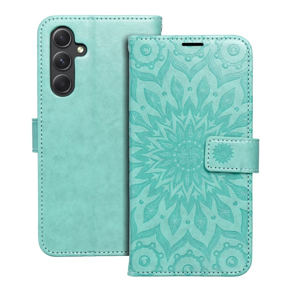 Peňaženkové / zatváracie Puzdro MEZZO Book pre SAMSUNG A54 5G mandala - zelené zaujme predovšetkým spracovaním vzoru mandaly, stromu, prípadne lapača snov. Oproti iným puzdrom podobného typu nie sú totiž vzory u puzdier Forcell Mezzo Book natlačené, ale vtlačené priamo do materiálu (ekologická koža). Vďaka tomu sa vzor jednak nezotrie, ale môžete ho naozaj na dotyk cítiť.