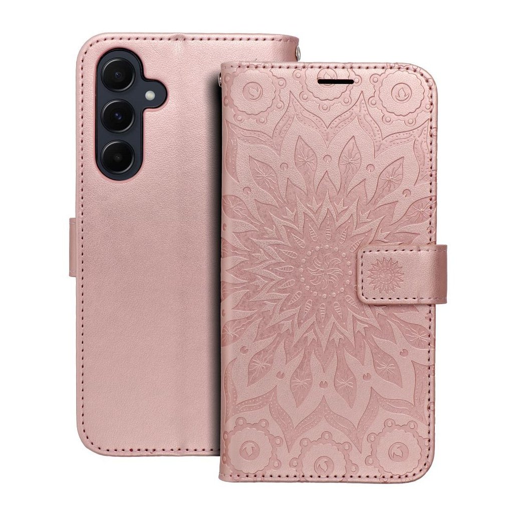 Peňaženkové / zatváracie Puzdro MEZZO Book pre SAMSUNG A55 5G mandala - ružovo zlaté zaujme predovšetkým spracovaním vzoru mandaly, stromu, prípadne lapača snov. Oproti iným puzdrom podobného typu nie sú totiž vzory u puzdier Forcell Mezzo Book natlačené, ale vtlačené priamo do materiálu (ekologická koža). Vďaka tomu sa vzor jednak nezotrie, ale môžete ho naozaj na dotyk cítiť.