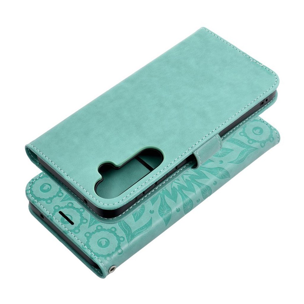 Peňaženkové / zatváracie Puzdro MEZZO Book pre SAMSUNG A55 5G mandala - zelené zaujme predovšetkým spracovaním vzoru mandaly, stromu, prípadne lapača snov. Oproti iným puzdrom podobného typu nie sú totiž vzory u puzdier Forcell Mezzo Book natlačené, ale vtlačené priamo do materiálu (ekologická koža). Vďaka tomu sa vzor jednak nezotrie, ale môžete ho naozaj na dotyk cítiť.