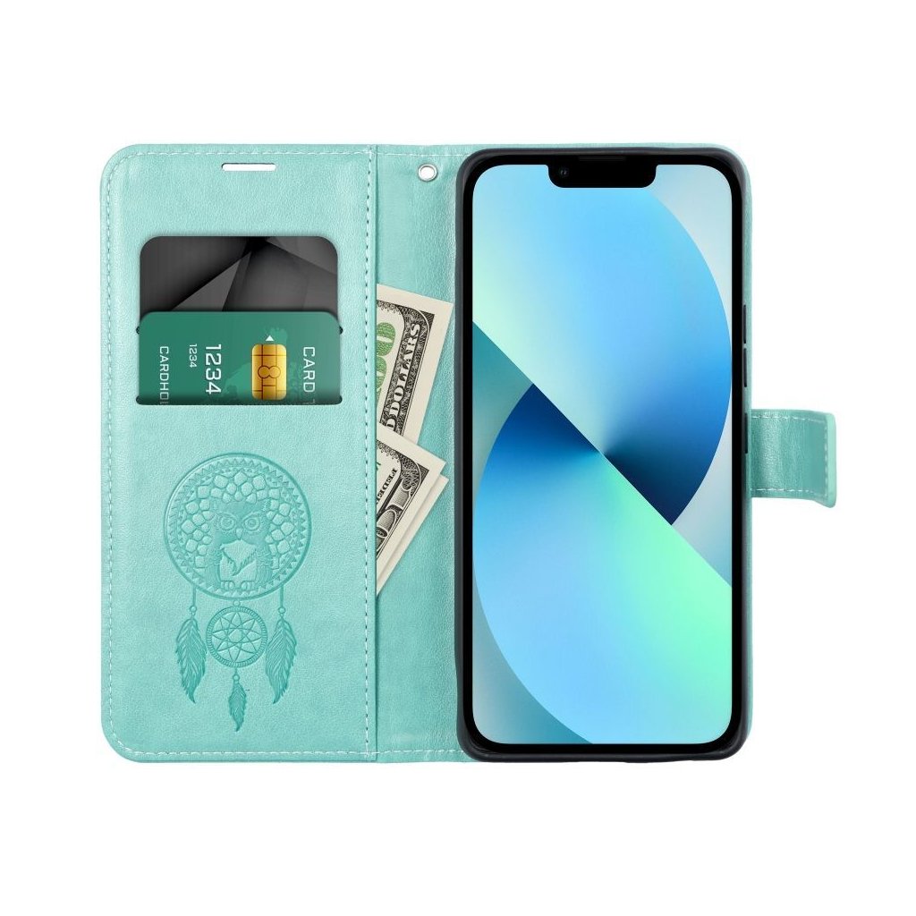 Peňaženkové / zatváracie Puzdro MEZZO Book pre SAMSUNG S25 lapač snov - zelené zaujme predovšetkým spracovaním vzoru mandaly, stromu, prípadne lapača snov. Oproti iným puzdrom podobného typu nie sú totiž vzory u puzdier Forcell Mezzo Book natlačené, ale vtlačené priamo do materiálu (ekologická koža). Vďaka tomu sa vzor jednak nezotrie, ale môžete ho naozaj na dotyk cítiť.