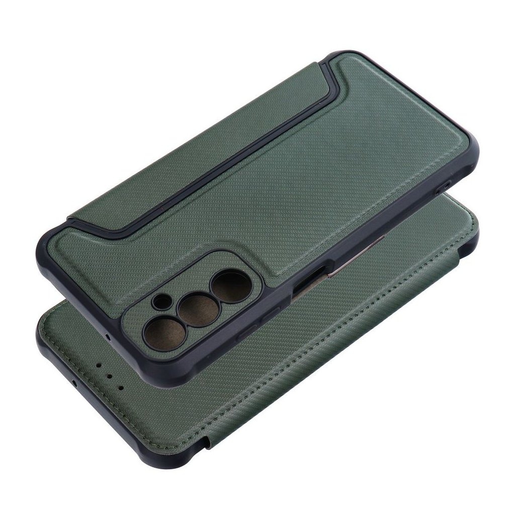 Luxusné zatváracie Puzdro RAZOR Book pre SAMSUNG A05s tmavo zelené je zárukou bezpečného používania telefónu v prestížnom štýle. Zosilnené okraje, mäkké vnútro a magnetické zapínanie chráni mobil pred poškriabaním a nárazmi.
