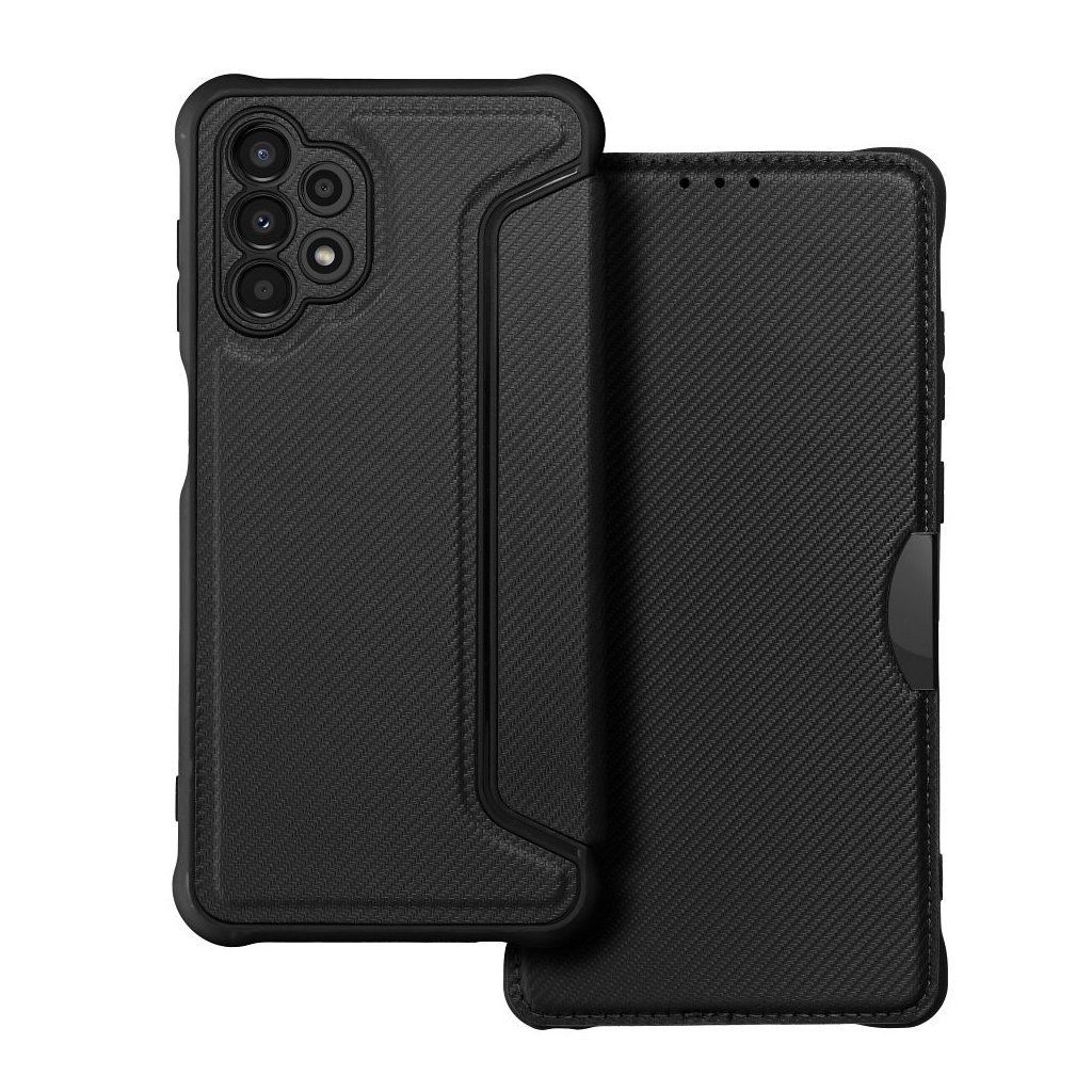 Luxusné zatváracie Puzdro RAZOR Book pre SAMSUNG A13 4G čierne je zárukou bezpečného používania telefónu v prestížnom štýle. Zosilnené okraje, mäkké vnútro a magnetické zapínanie chráni mobil pred poškriabaním a nárazmi.