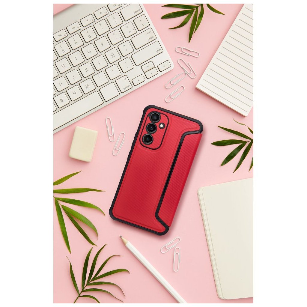 Luxusné zatváracie Puzdro RAZOR Book pre SAMSUNG A52 5G / A52 LTE ( 4G ) / A52s 5G červené je zárukou bezpečného používania telefónu v prestížnom štýle. Zosilnené okraje, mäkké vnútro a magnetické zapínanie chráni mobil pred poškriabaním a nárazmi.