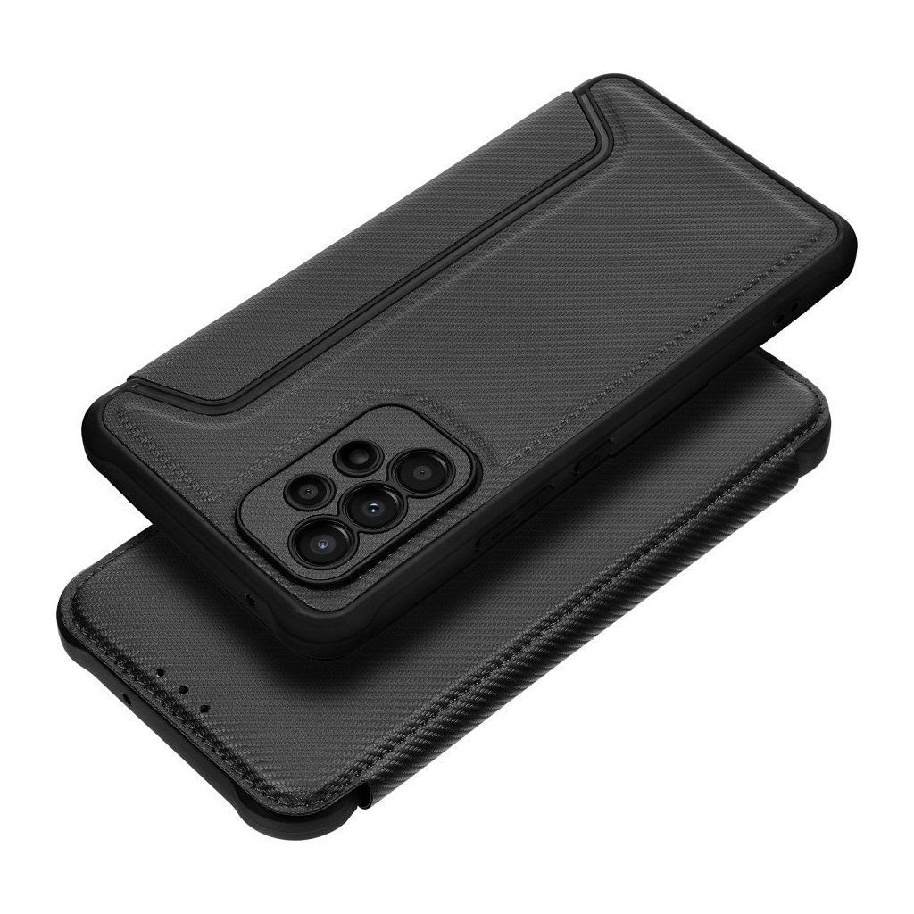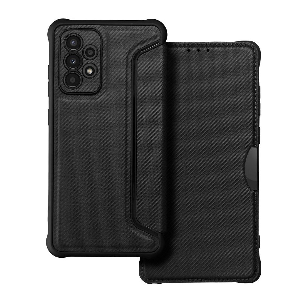 Luxusné zatváracie Puzdro RAZOR Book pre SAMSUNG A53 5G čierne je zárukou bezpečného používania telefónu v prestížnom štýle. Zosilnené okraje, mäkké vnútro a magnetické zapínanie chráni mobil pred poškriabaním a nárazmi.
