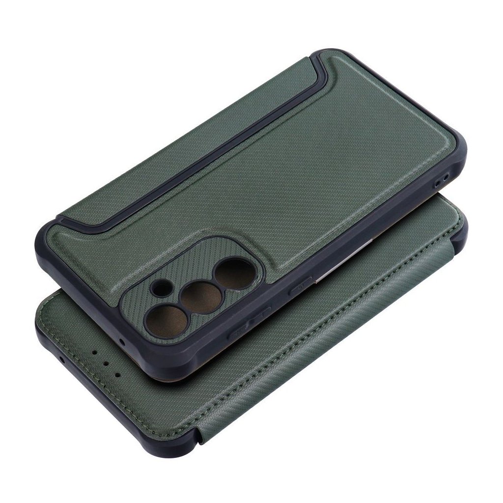 Luxusné zatváracie Puzdro RAZOR Book pre SAMSUNG S23 FE tmavo zelené je zárukou bezpečného používania telefónu v prestížnom štýle. Zosilnené okraje, mäkké vnútro a magnetické zapínanie chráni mobil pred poškriabaním a nárazmi.