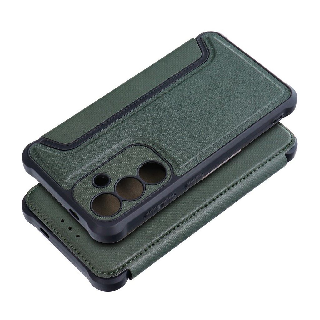 Luxusné zatváracie Puzdro RAZOR Book pre SAMSUNG S24 tmavo zelené je zárukou bezpečného používania telefónu v prestížnom štýle. Zosilnené okraje, mäkké vnútro a magnetické zapínanie chráni mobil pred poškriabaním a nárazmi.