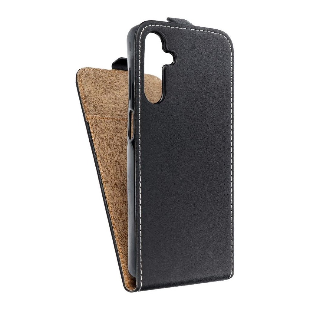 Vertikálne zatváracie puzdro SLIM FLEXI FRESH pre SAMSUNG A15 4G / A15 5G čierne je vyrobené z vysoko kvalitnej mäkkej technickej kože, ktorá je vystužená a na okrajoch prešívaná. Puzdro je teda nielen elegantné, ale aj pevnejšie. Mäkká povrchová úprava vnútra puzdra zaručí skvelú ochranu displeja vášho telefónu pred poškriabaním.
