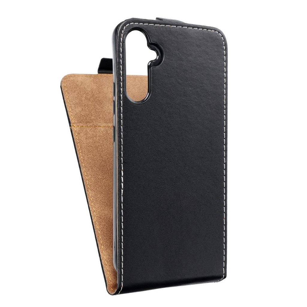 Vertikálne zatváracie puzdro SLIM FLEXI FRESH pre SAMSUNG A34 5G čierne je vyrobené z vysoko kvalitnej mäkkej technickej kože, ktorá je vystužená a na okrajoch prešívaná. Puzdro je teda nielen elegantné, ale aj pevnejšie. Mäkká povrchová úprava vnútra puzdra zaručí skvelú ochranu displeja vášho telefónu pred poškriabaním.