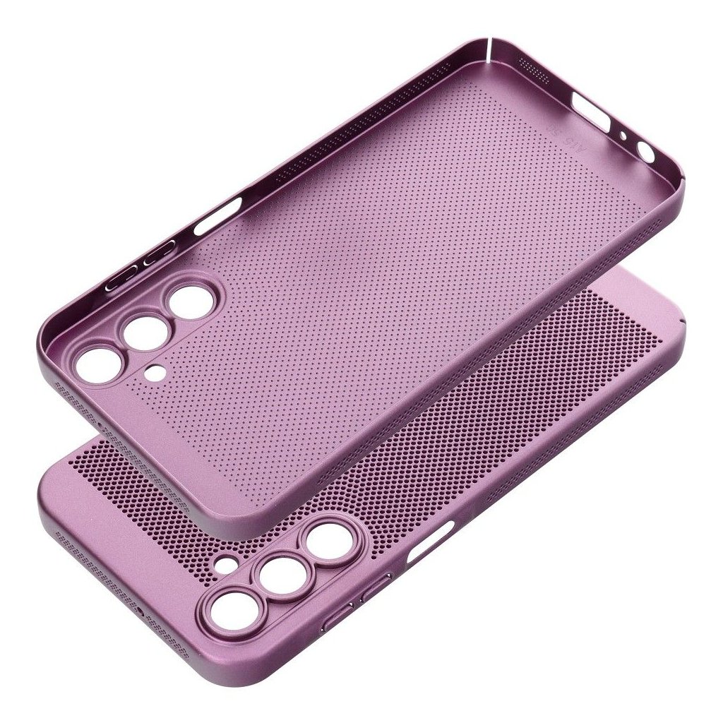 Kryt s vetraním BREEZY case pre SAMSUNG A15 4G / A15 5G fialový je riešenie ktoré spája ochranu, funkčnosť a štýlový dizajn. Bolo navrhnuté tak, aby zabezpečilo optimálnu cirkuláciu vzduchu, čím sa znižuje riziko zahrievania telefónu. Vďaka perforovanému vzoru a kvalitnému plastu puzdro chráni telefón a zachováva jeho štíhlosť. Je vyrobené z jedného odliatku, čo zaručuje dokonalé prispôsobenie a ochranu ostrovčeka fotoaparátu.