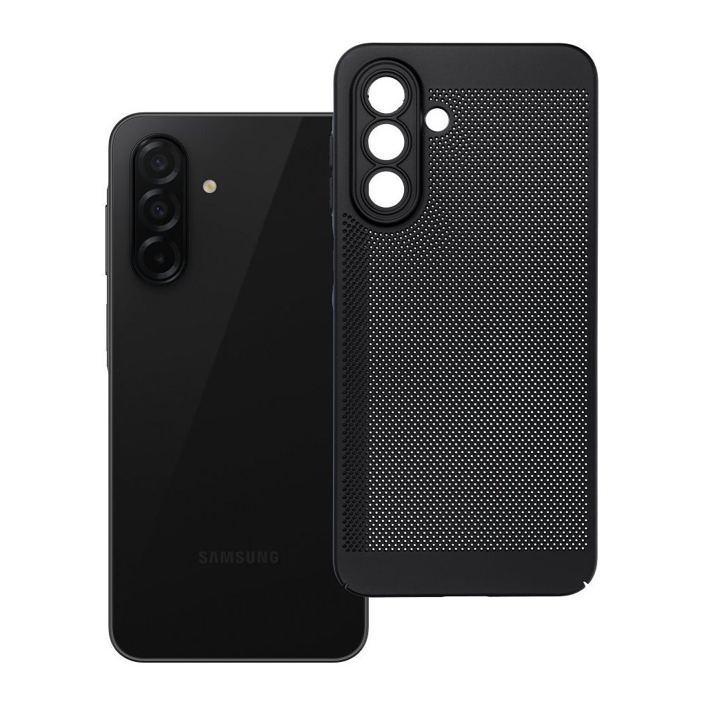 Kryt s vetraním Case pre Samsung A26 5G Breezy čierny je riešenie ktoré spája ochranu, funkčnosť a štýlový dizajn. Bolo navrhnuté tak, aby zabezpečilo optimálnu cirkuláciu vzduchu, čím sa znižuje riziko zahrievania telefónu. Vďaka perforovanému vzoru a kvalitnému plastu puzdro chráni telefón a zachováva jeho štíhlosť. Je vyrobené z jedného odliatku, čo zaručuje dokonalé prispôsobenie a ochranu ostrovčeka fotoaparátu.