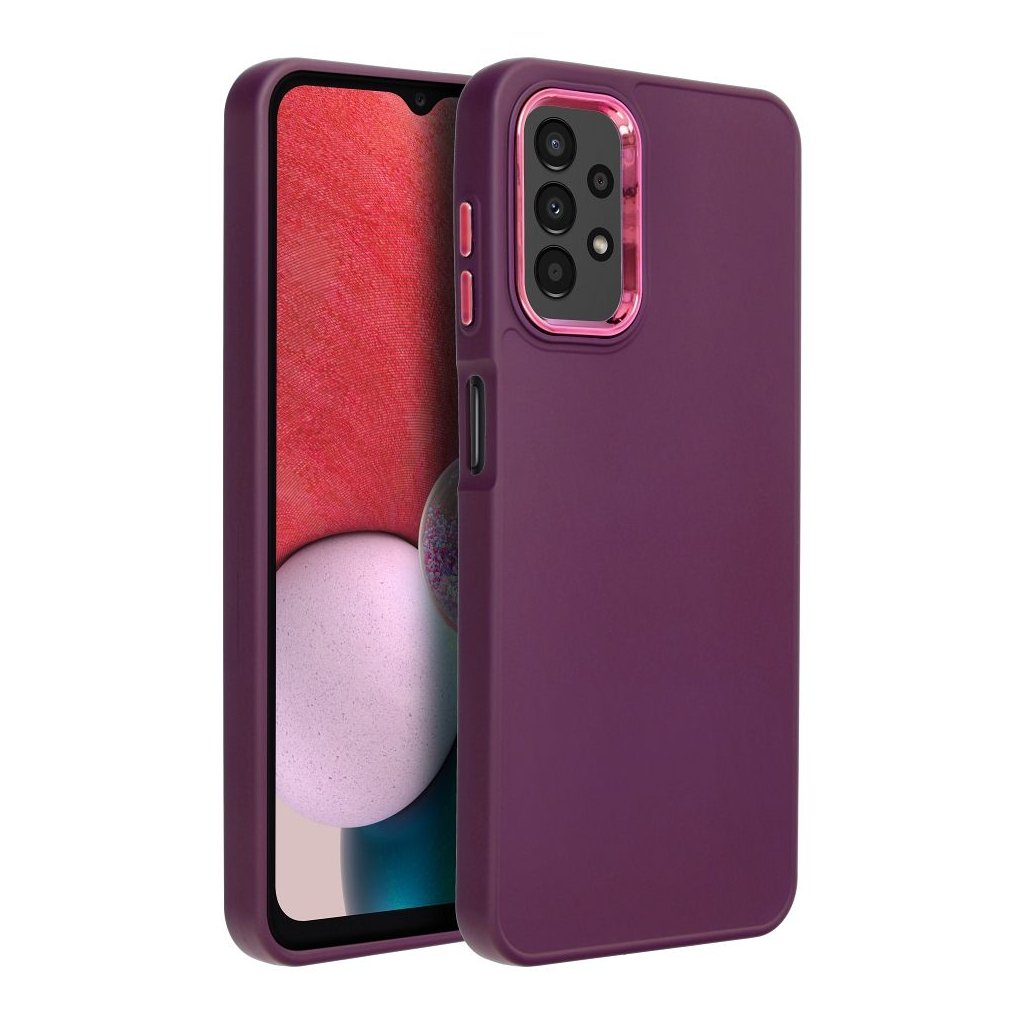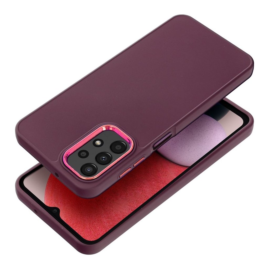 Tento štýlový kryt FRAME Case pre SAMSUNG A13 5G / A04S fialový bude váš elegantný a praktický doplnok pre váš outfit. Má zosilnené okraje, mäkký materiál TPU a vyvýšený rám okolo ostrovčeka fotoaparátu. Je vyrobený z PC a potiahnutý pozinkovanou lesklou vrstvou v odtieni, ktorý dokonale dopĺňa farbu celého puzdra. Rovnaký farebný povrch je použitý aj na bočných tlačidlách.