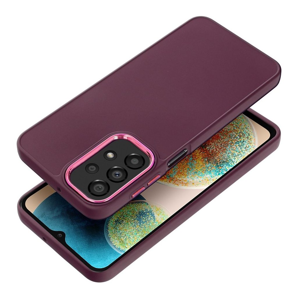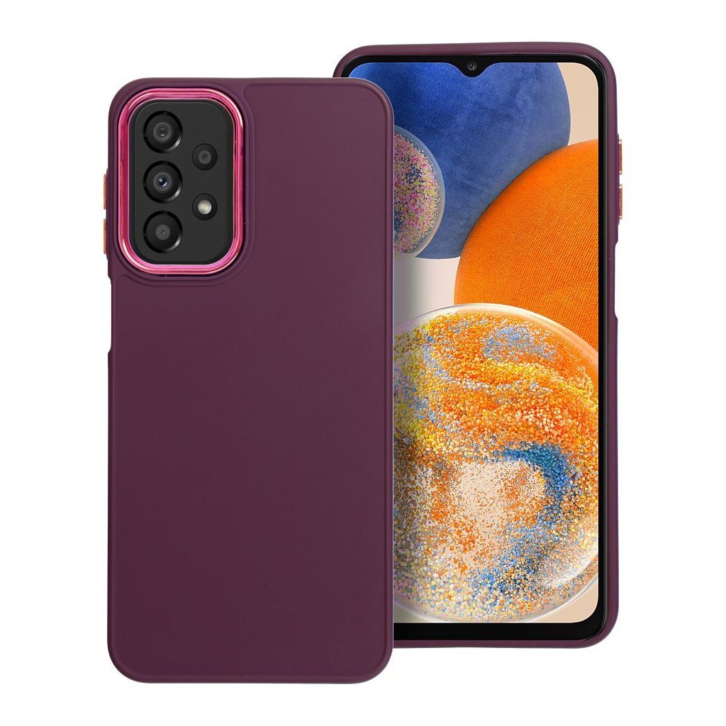 Tento štýlový kryt FRAME Case pre SAMSUNG A23 5G fialový bude váš elegantný a praktický doplnok pre váš outfit. Má zosilnené okraje, mäkký materiál TPU a vyvýšený rám okolo ostrovčeka fotoaparátu. Je vyrobený z PC a potiahnutý pozinkovanou lesklou vrstvou v odtieni, ktorý dokonale dopĺňa farbu celého puzdra. Rovnaký farebný povrch je použitý aj na bočných tlačidlách.