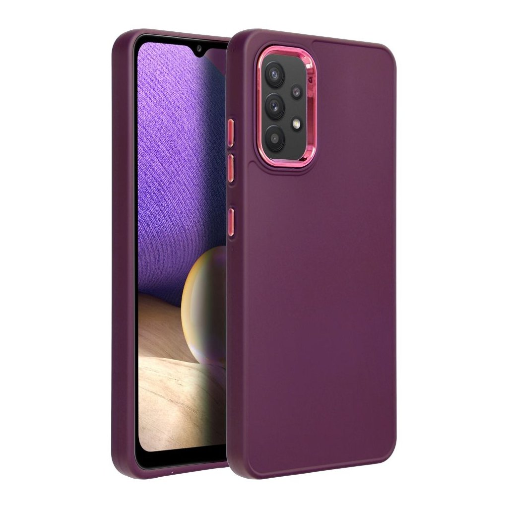 Tento štýlový kryt FRAME Case pre SAMSUNG A32 LTE ( 4G ) fialový bude váš elegantný a praktický doplnok pre váš outfit. Má zosilnené okraje, mäkký materiál TPU a vyvýšený rám okolo ostrovčeka fotoaparátu. Je vyrobený z PC a potiahnutý pozinkovanou lesklou vrstvou v odtieni, ktorý dokonale dopĺňa farbu celého puzdra. Rovnaký farebný povrch je použitý aj na bočných tlačidlách.