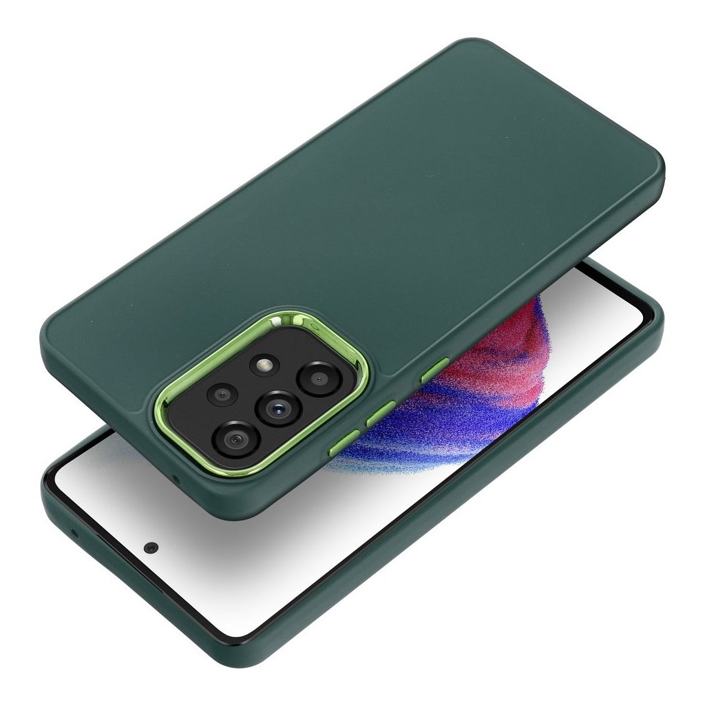 Tento štýlový kryt FRAME Case pre SAMSUNG A52 5G / A52 LTE ( 4G ) / A52s 5G zelený bude váš elegantný a praktický doplnok pre váš outfit. Má zosilnené okraje, mäkký materiál TPU a vyvýšený rám okolo ostrovčeka fotoaparátu. Je vyrobený z PC a potiahnutý pozinkovanou lesklou vrstvou v odtieni, ktorý dokonale dopĺňa farbu celého puzdra. Rovnaký farebný povrch je použitý aj na bočných tlačidlách.