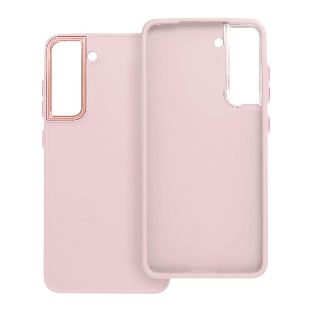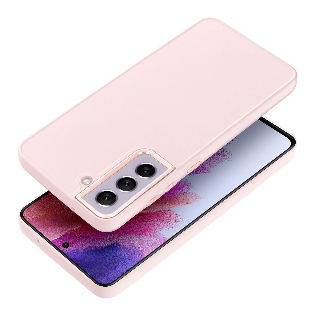 Tento štýlový kryt FRAME Case pre SAMSUNG S21 FE ružový bude váš elegantný a praktický doplnok pre váš outfit. Má zosilnené okraje, mäkký materiál TPU a vyvýšený rám okolo ostrovčeka fotoaparátu. Je vyrobený z PC a potiahnutý pozinkovanou lesklou vrstvou v odtieni, ktorý dokonale dopĺňa farbu celého puzdra. Rovnaký farebný povrch je použitý aj na bočných tlačidlách.