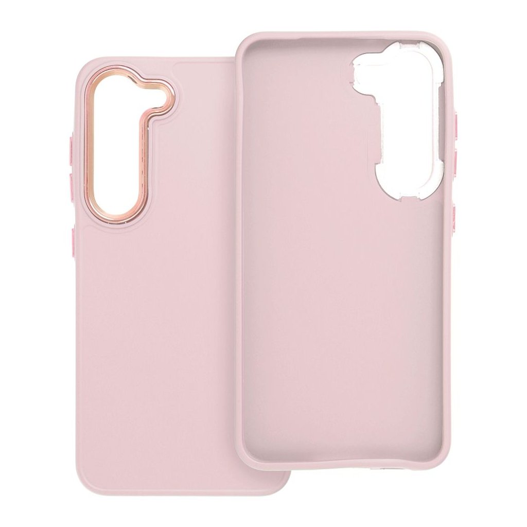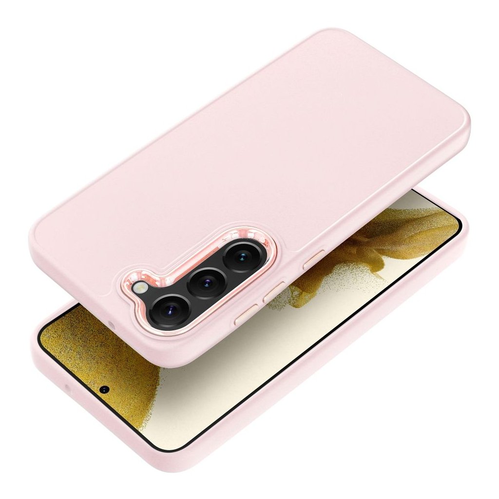 Tento štýlový kryt FRAME Case pre SAMSUNG S23 ružový bude váš elegantný a praktický doplnok pre váš outfit. Má zosilnené okraje, mäkký materiál TPU a vyvýšený rám okolo ostrovčeka fotoaparátu. Je vyrobený z PC a potiahnutý pozinkovanou lesklou vrstvou v odtieni, ktorý dokonale dopĺňa farbu celého puzdra. Rovnaký farebný povrch je použitý aj na bočných tlačidlách.