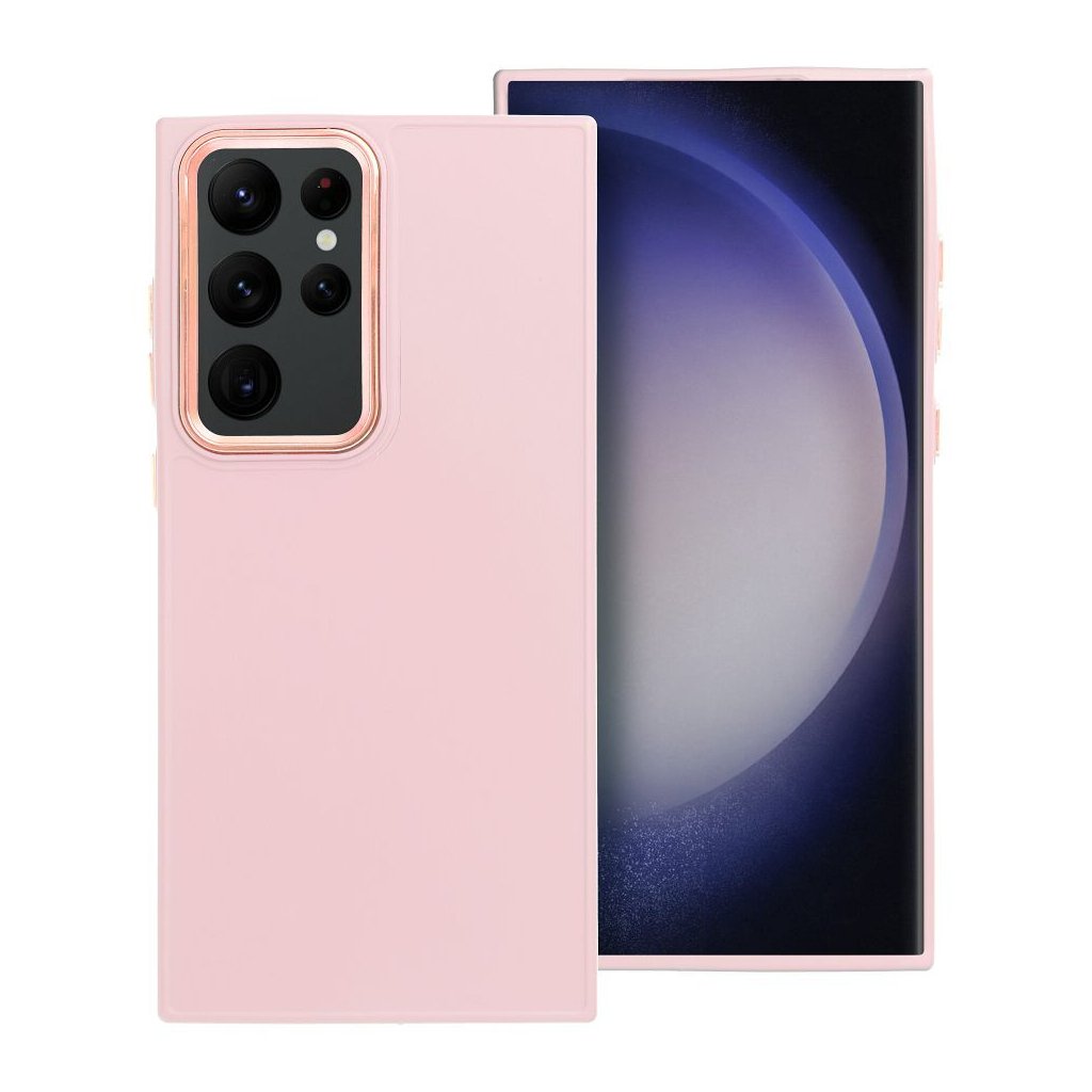 Tento štýlový kryt FRAME Case pre SAMSUNG S23 Ultra ružový bude váš elegantný a praktický doplnok pre váš outfit. Má zosilnené okraje, mäkký materiál TPU a vyvýšený rám okolo ostrovčeka fotoaparátu. Je vyrobený z PC a potiahnutý pozinkovanou lesklou vrstvou v odtieni, ktorý dokonale dopĺňa farbu celého puzdra. Rovnaký farebný povrch je použitý aj na bočných tlačidlách.