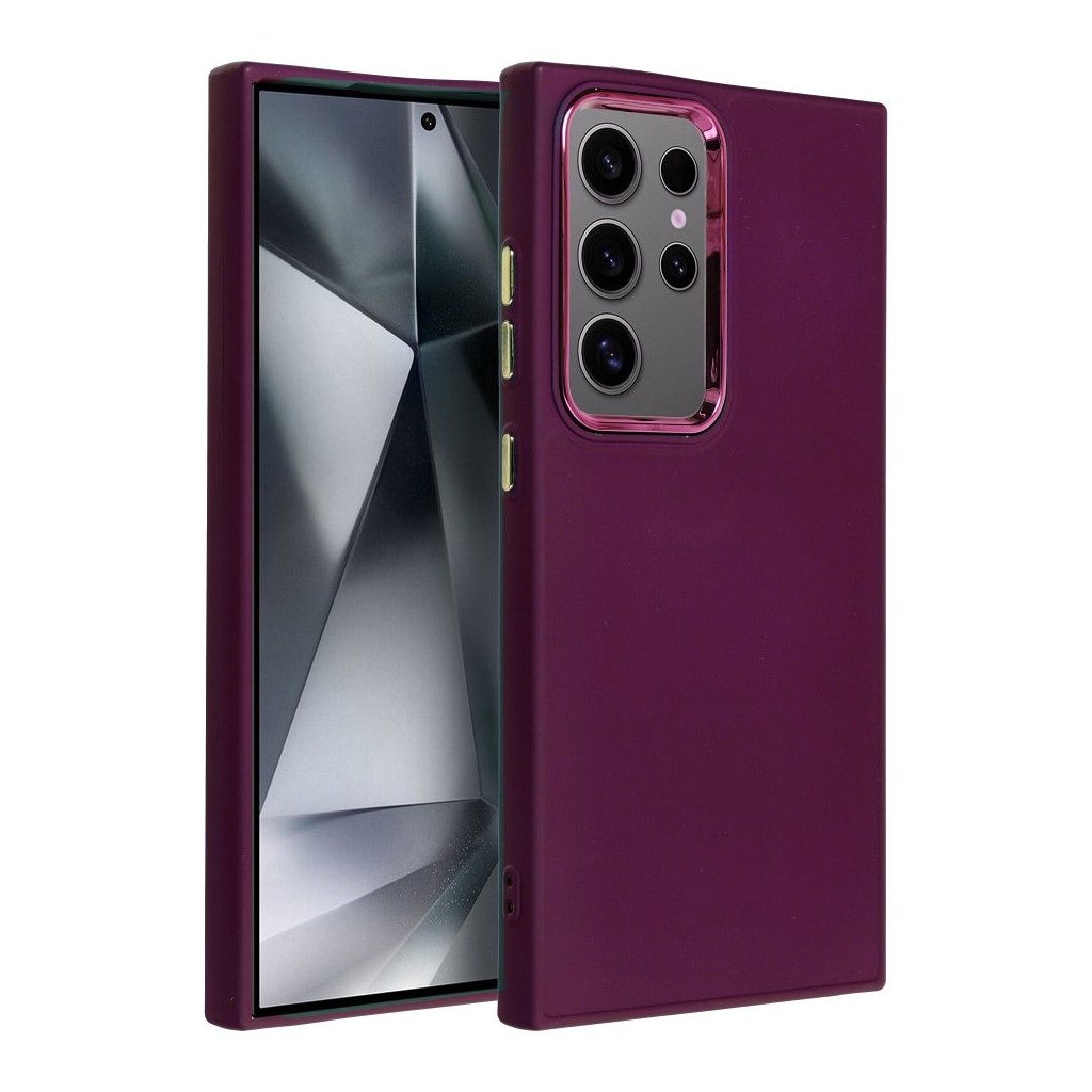 Tento štýlový kryt FRAME Case pre SAMSUNG S24 Ultra fialový bude váš elegantný a praktický doplnok pre váš outfit. Má zosilnené okraje, mäkký materiál TPU a vyvýšený rám okolo ostrovčeka fotoaparátu. Je vyrobený z PC a potiahnutý pozinkovanou lesklou vrstvou v odtieni, ktorý dokonale dopĺňa farbu celého puzdra. Rovnaký farebný povrch je použitý aj na bočných tlačidlách.