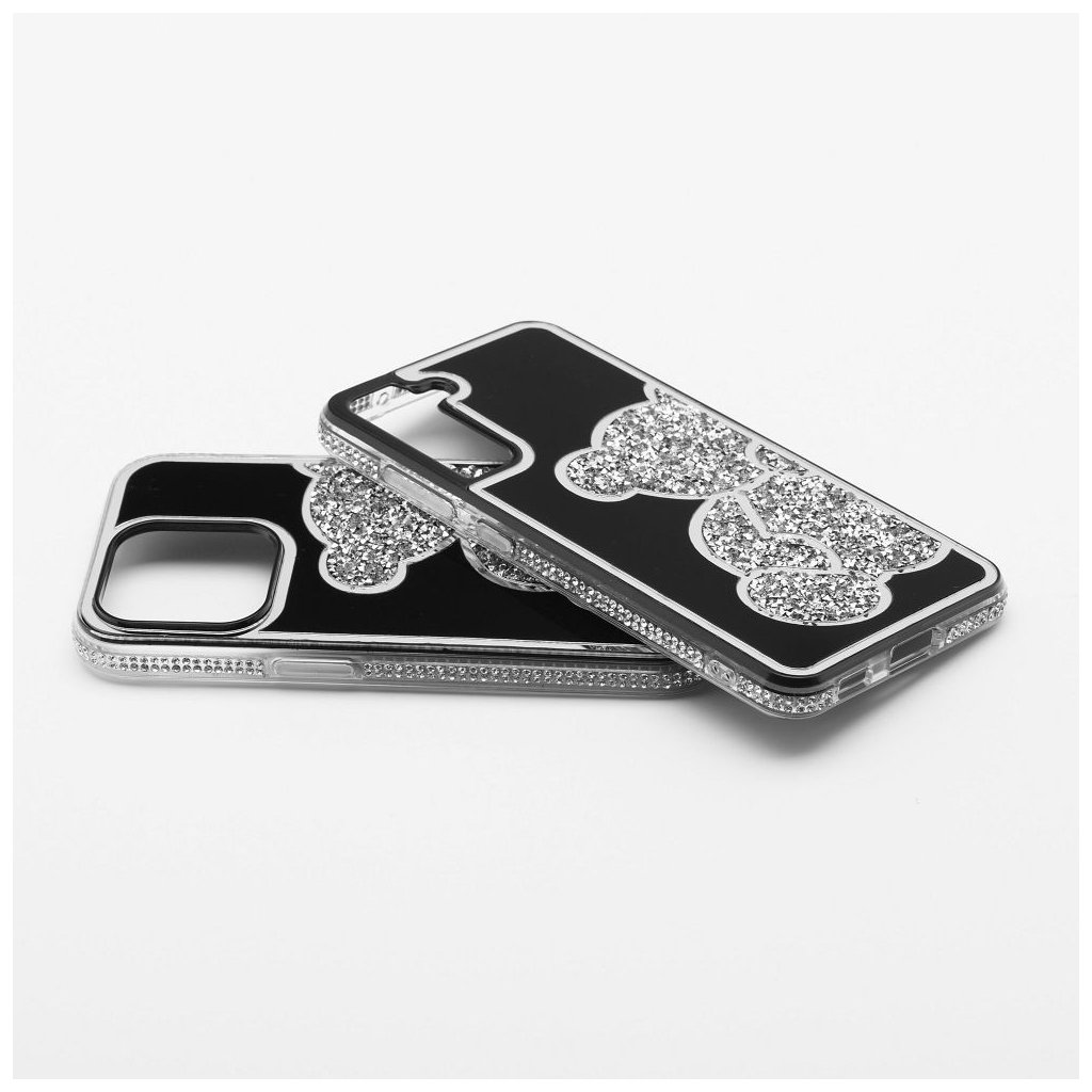 Elegantný kryt na mobil TEDDY BEAR pre SAMSUNG A17 strieborný ktorý sa vyznačuje charakteristickým trblietavým vzorom medvedíka, vyvýšenými okrajmi a plastom.