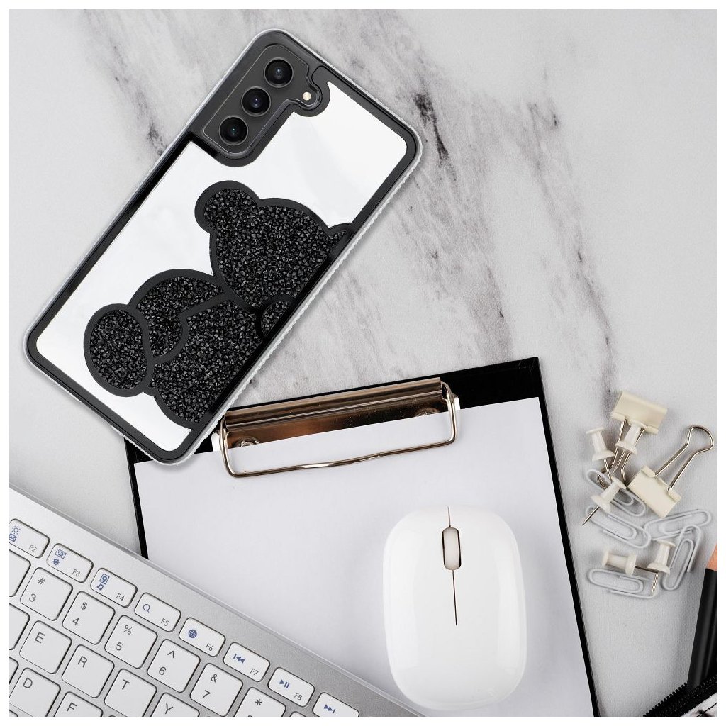 Trblietavý obal Teddy Bear je vyrobený z kvalitných materiálov PU a TPU a zaručuje odolnosť. Zvýšené okraje okolo ostrovčeka fotoaparátu a obrazovky poskytujú dodatočnú ochranu pred poškriabaním a poškodením počas každodenného používania.