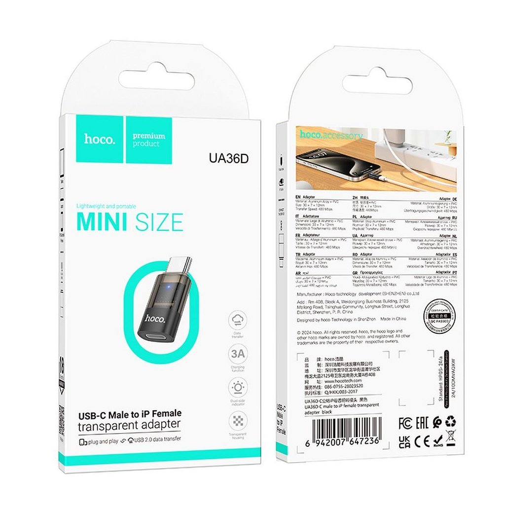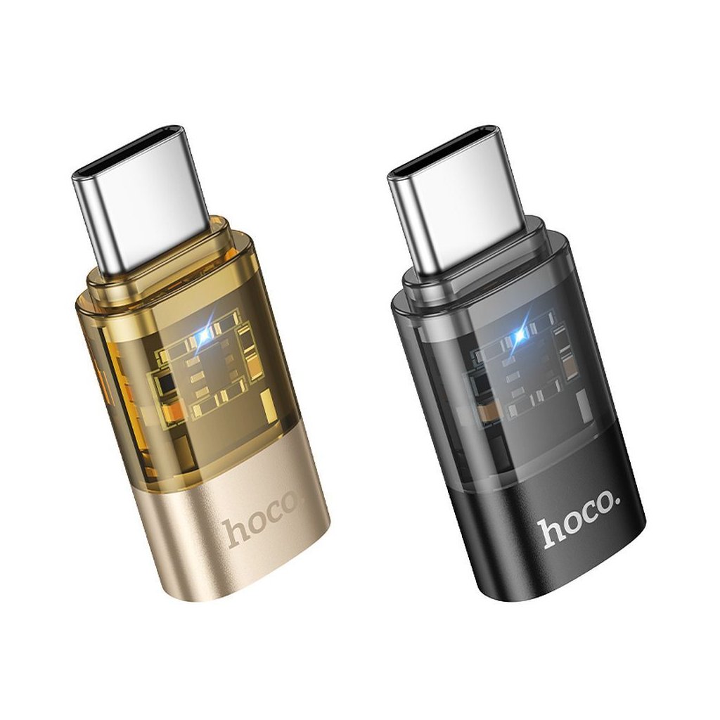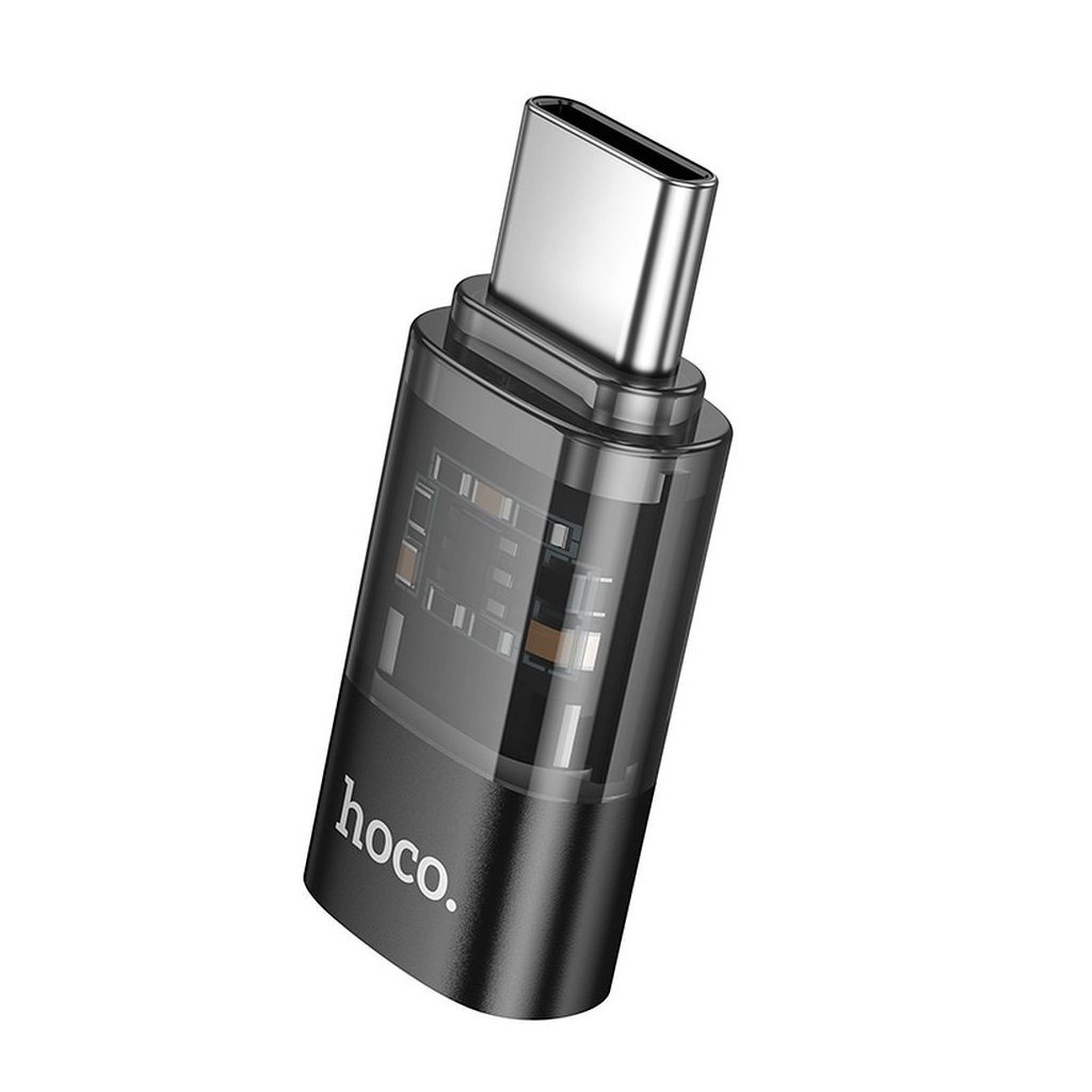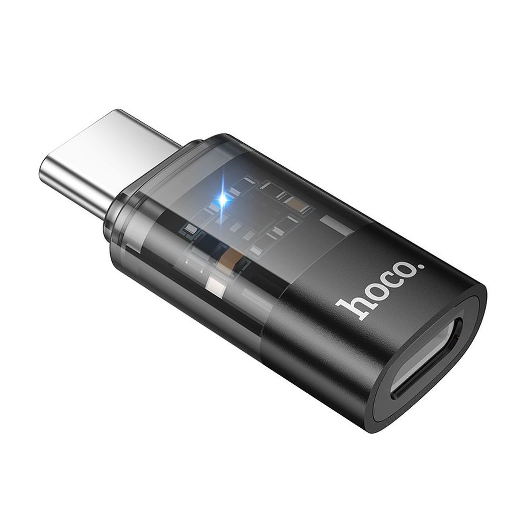 Adaptér HOCO Lightning port na USB-C, transparentný čierny (UA36D)