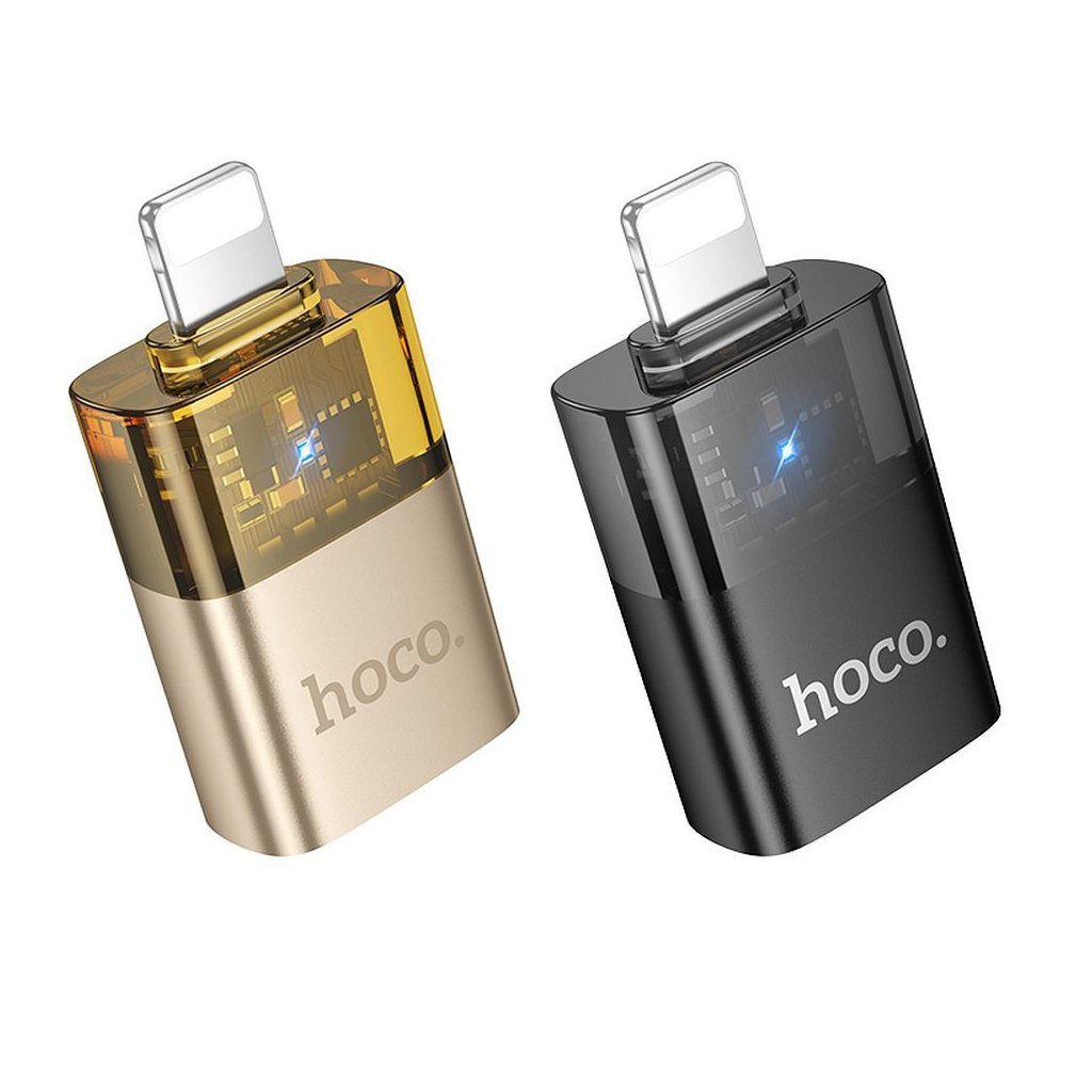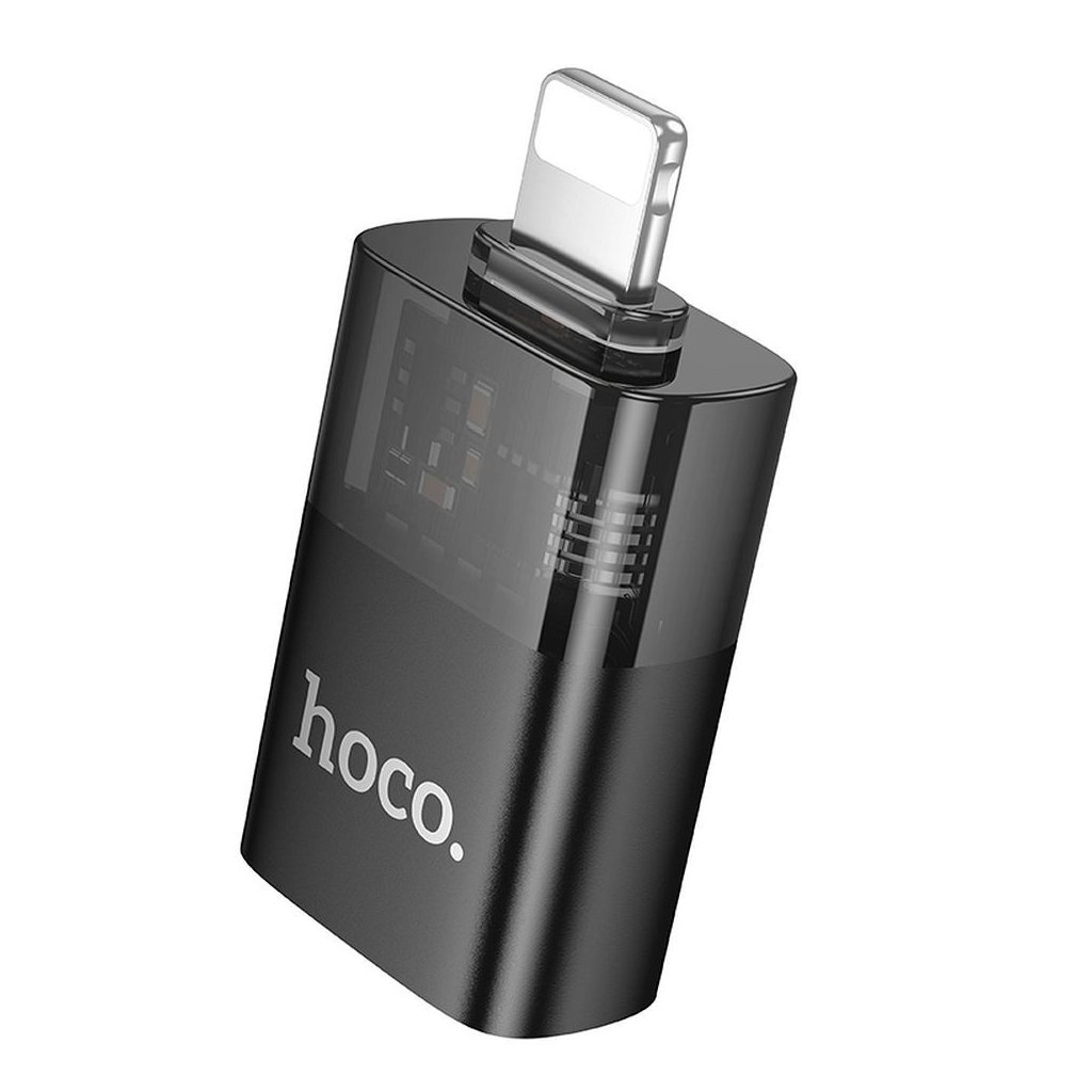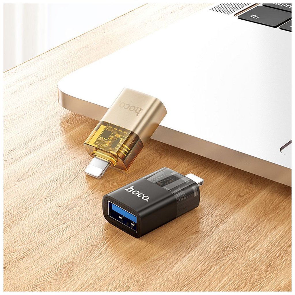 Adaptér HOCO OTG USB-A na Lightning, čierny transparentný (UA36)