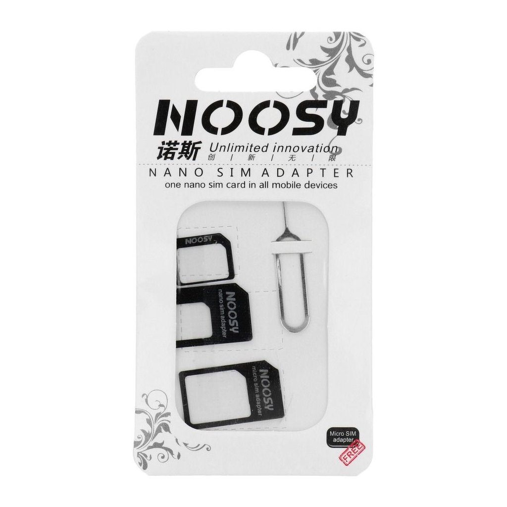 NOOSY 4 v 1 Adaptér Sim Card(NANO/MICRO/SIM) černý + klíček na vytažení SIM