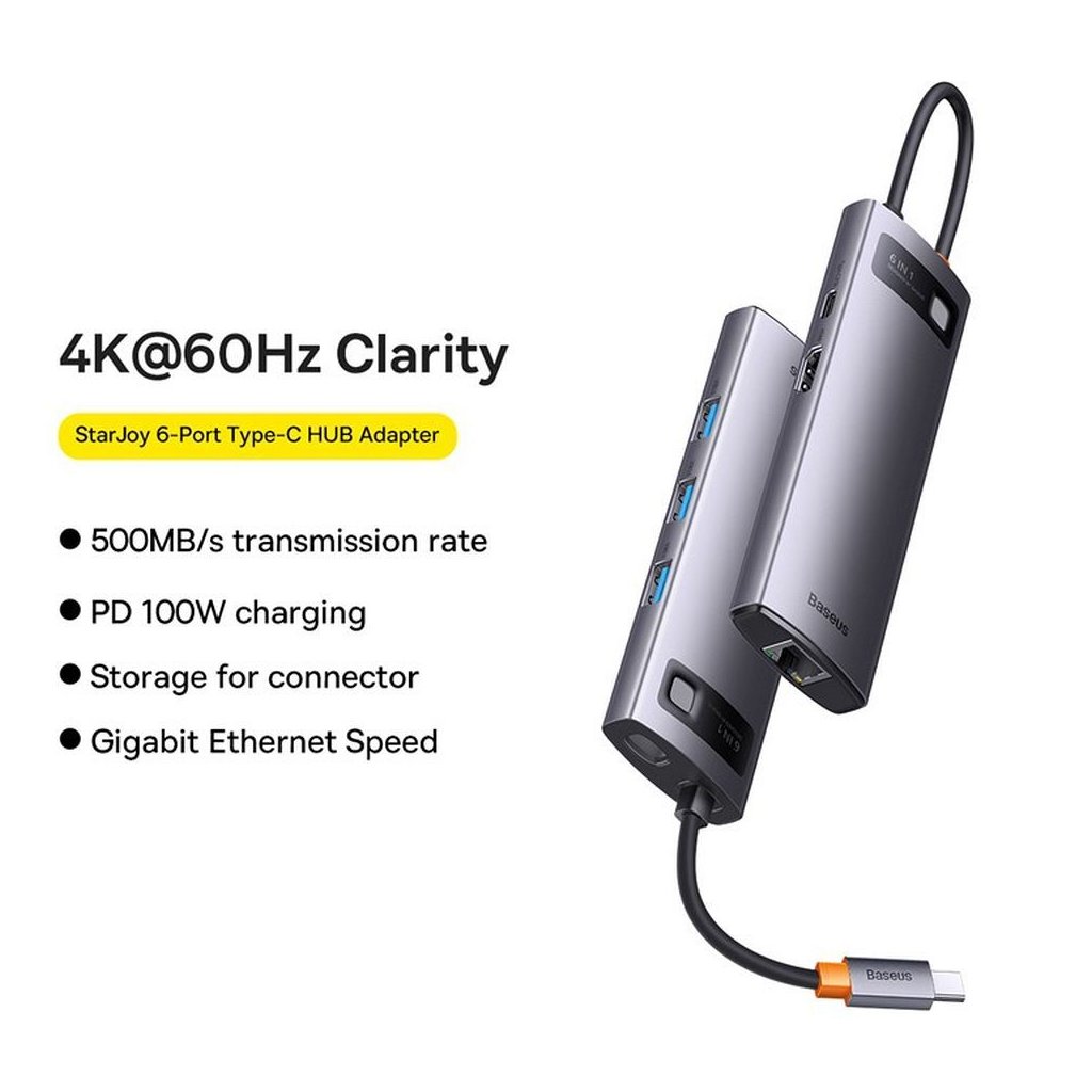 BASEUS adaptér HUB 6v1 Typ C WKWG080013/BS-OH100 0,15 m šedý