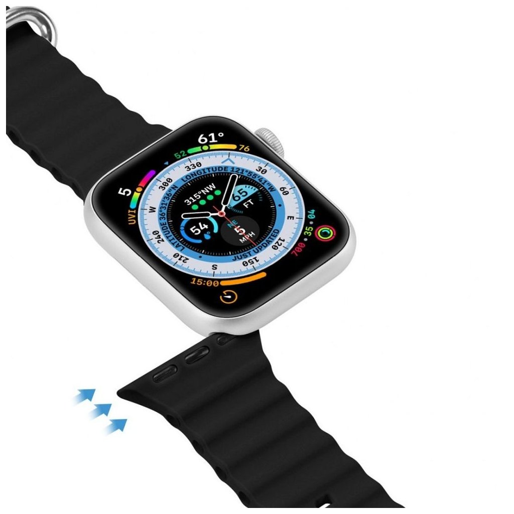DUX DUCIS Ocean Wave - športový silikónový remienok pre Apple Watch 42/44/45 mm čierny