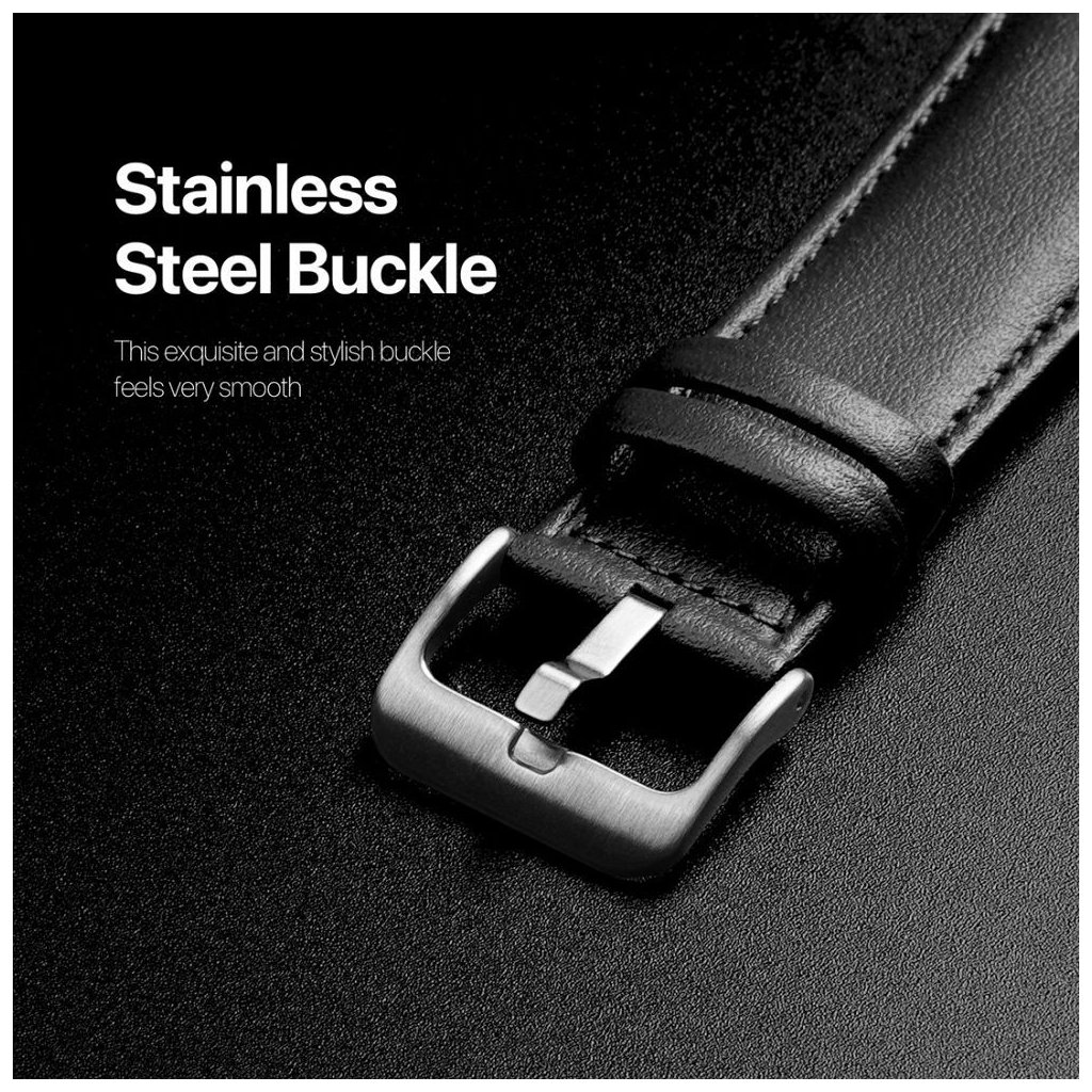 Vyrobený z prírodnej hovädzej kože s oceľovou sponou zaisťujúcou bezpečnosť a bezpečné zapínanie. Dôležité je, že remienok je možné prať. Vďaka tomu bude doplnok vždy čistý a svieži bez ohľadu na to, ako intenzívne sa používa.