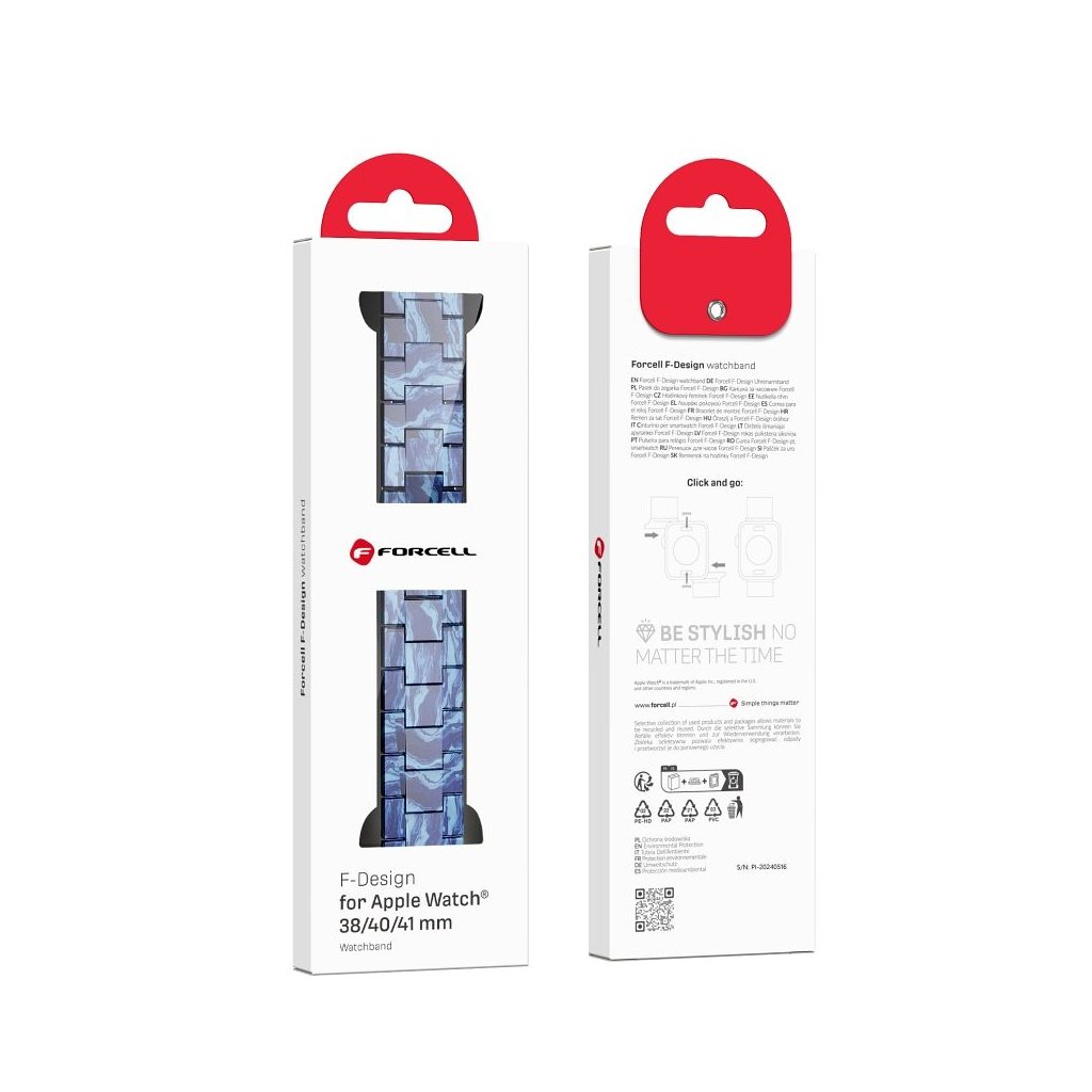 Remienok Forcell F-Design bol vytvorený s ohľadom na hodinky Apple Watch. Je vyrobený z vysokokvalitného plastu imitujúceho živicu. Mramorový vzor dodáva remienku eleganciu a jedinečný vzhľad, ktorý je ideálny na rôzne príležitosti. Vďaka univerzálnemu klasickému dizajnu sa dokonale hodí k rôznym štýlom.
